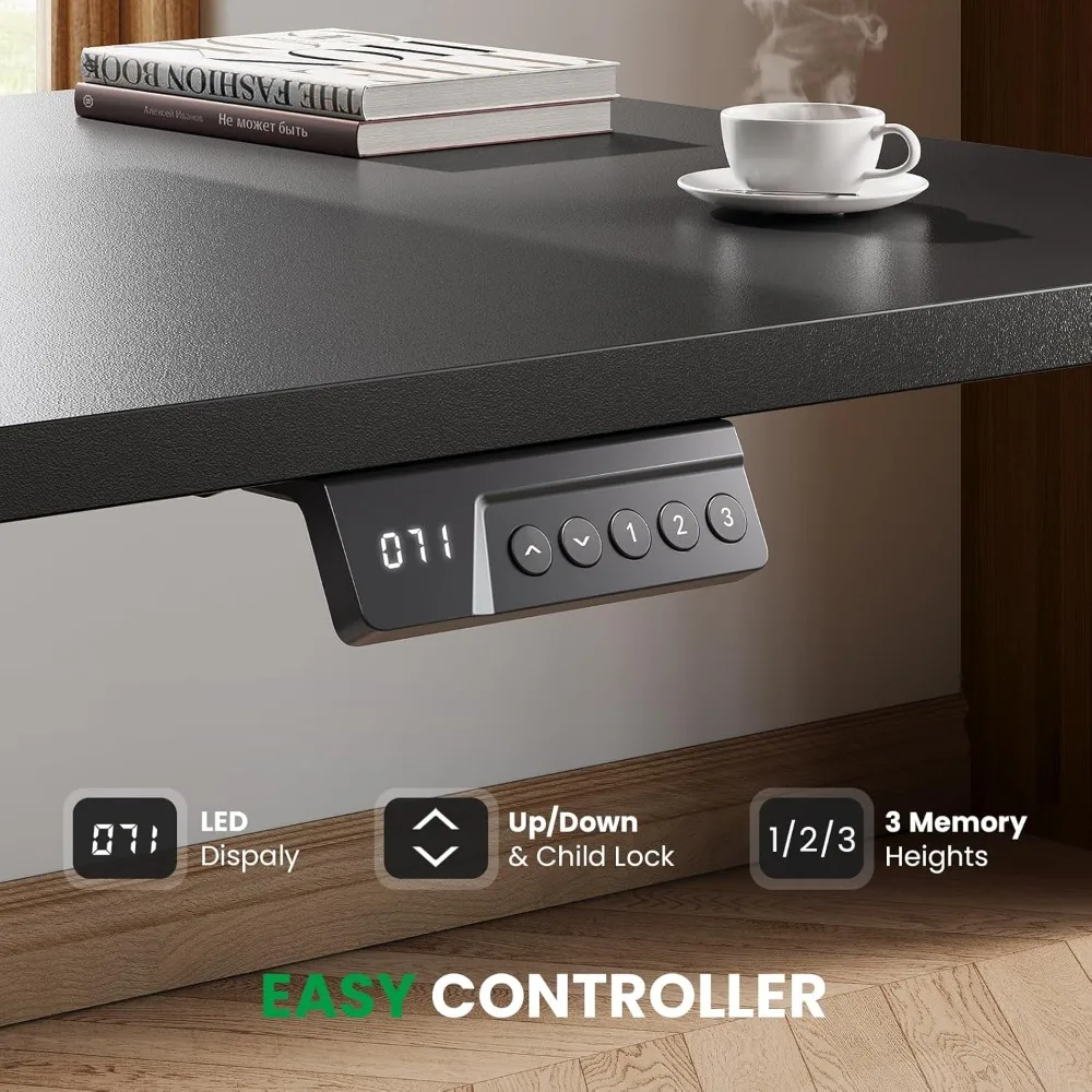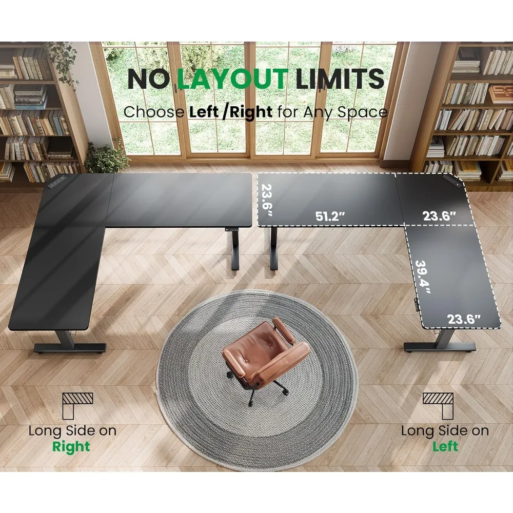 - 【Easy Controller & Height Adjustment】The L-shaped standing desk equipped with a smart memory controller, this desk allows you to preset 3 custom heights (27.5" - 45.7") for one-touch access to your ideal sitting/standing height with seamless transitions. The exclusive child safety lock prevents accidental operation. standing desk is your ultimate solution for maintaining healthy work habits in the comfort of home.