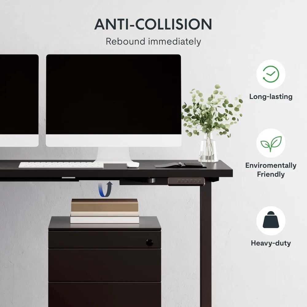 1. Sturdy L-Shaped Design with Three-Leg Stability Crafted with a heavy-duty steel frame and durable laminate desktop, this L-shaped desk offers superior stability in any corner setup. The innovative three-leg design maximizes floor space while providing robust support, ensuring wobble-free performance even at full height. Ideal for dual-monitor setups or multitasking. 2. Smooth Electric Height Adjustment Power through your day with a quiet, robust lift system that transitions seamlessly between 28.3" to 45.9" (sit to stand). Preset up to four programmable heights via the intuitive control panel, adapting effortlessly to shared work spaces or individual ergonomic needs. Supports up to 220 lbs. 3. Spacious Workspace & Smart Organization Generous surface accommodates multiple monitors, laptops, and accessories. Features a sleek, scratch-resistant finish in black, white or Rustic to match any decor. 4. Tool-Free Assembly & Compact Packaging Pre-attached legs and labeled components enable hassle-free setup in under 45 minutes. Compact shipping box ensures easy transport to home or office. 5. 5-Year Warranty & Lifetime Support Backed by a 5-year frame warranty and 2-year motor coverage, plus 24/7 customer service. Our table is made from FSC-Certified wood. Eco-conscious construction meets BIFMA certifications for safety and durability. 6. Table top made of FSC-Certified wood