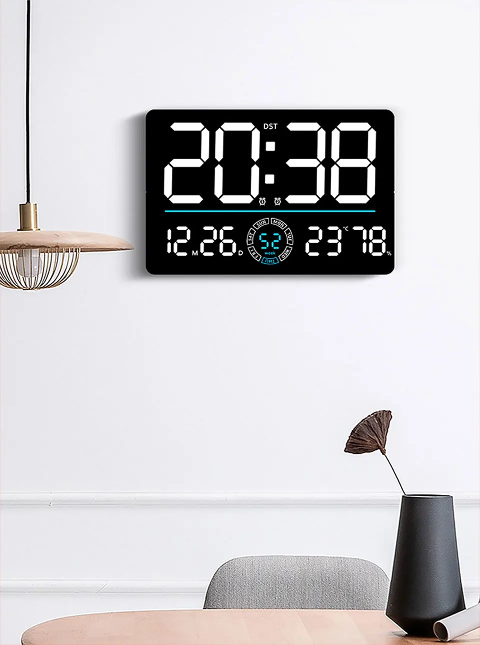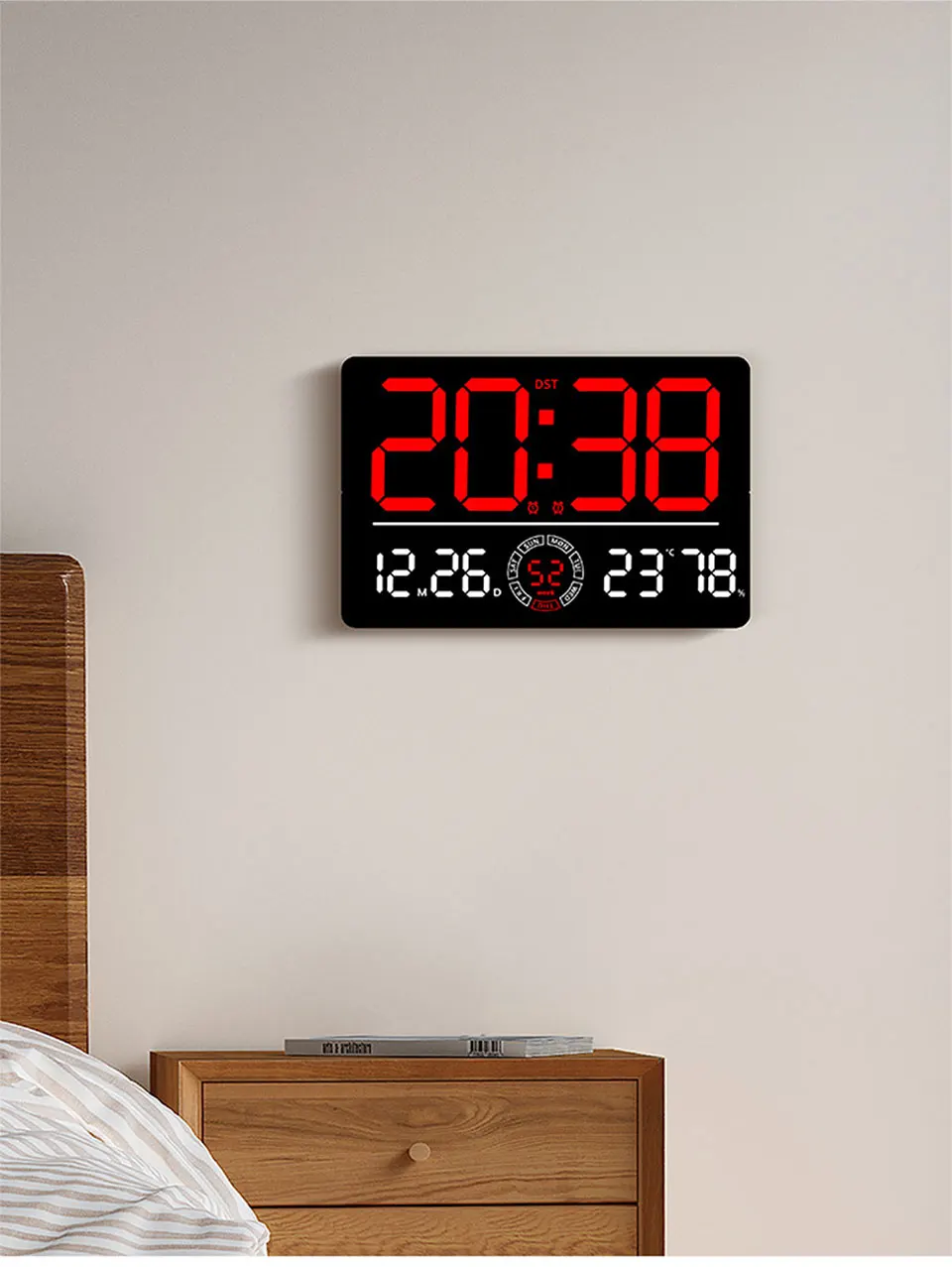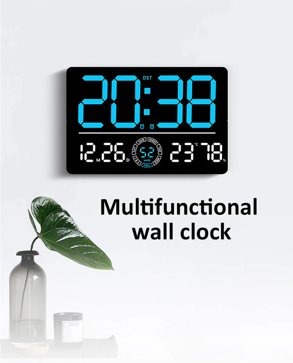 Large Digital Wall Clock 10 Brightness Adjustment Dual Alarm LED Clocks Week+Number of Weeks Alarm Clock with Timing Function