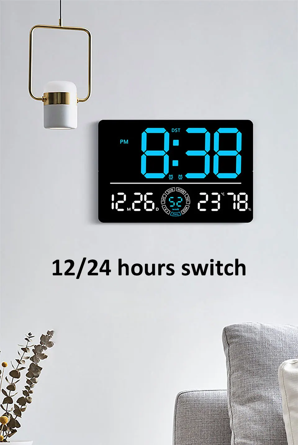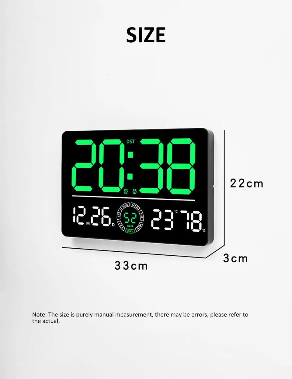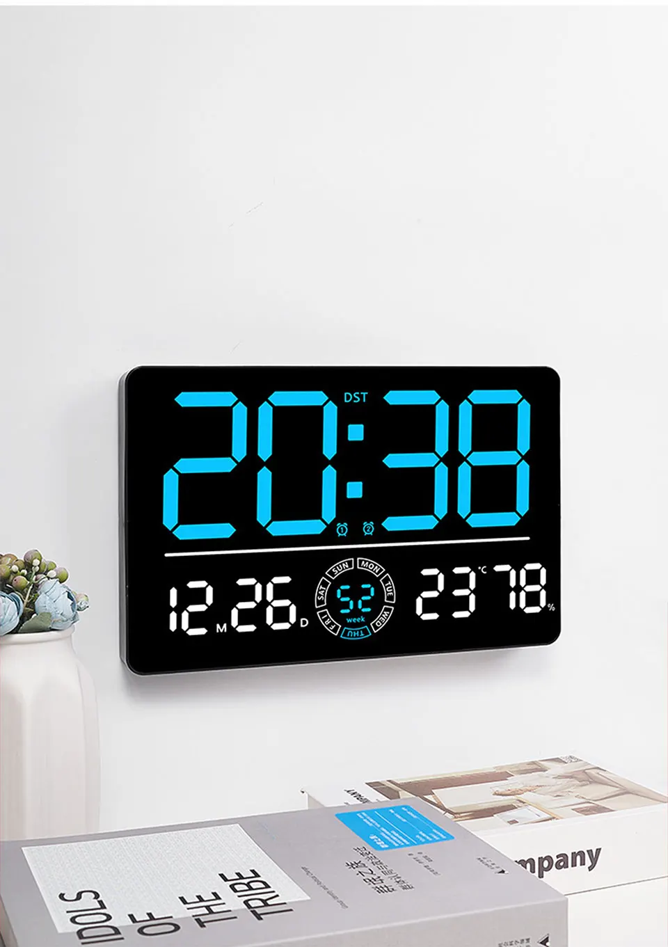 Large Digital Wall Clock 10 Brightness Adjustment Dual Alarm LED Clocks Week+Number of Weeks Alarm Clock with Timing Function