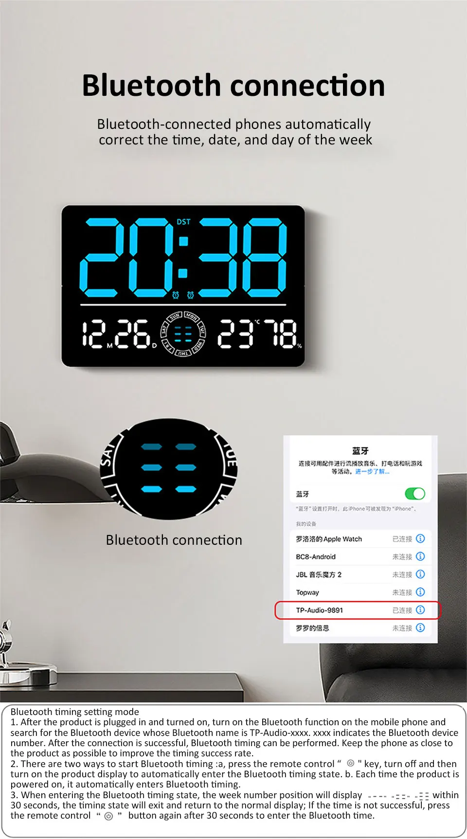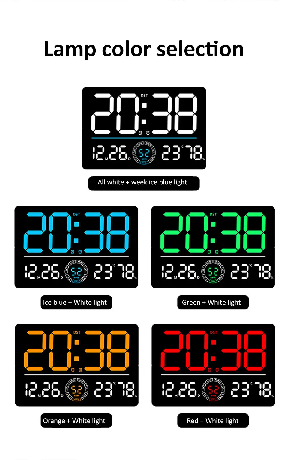 * LED digital clock with week and day of the week display, more intuitive and clearer.