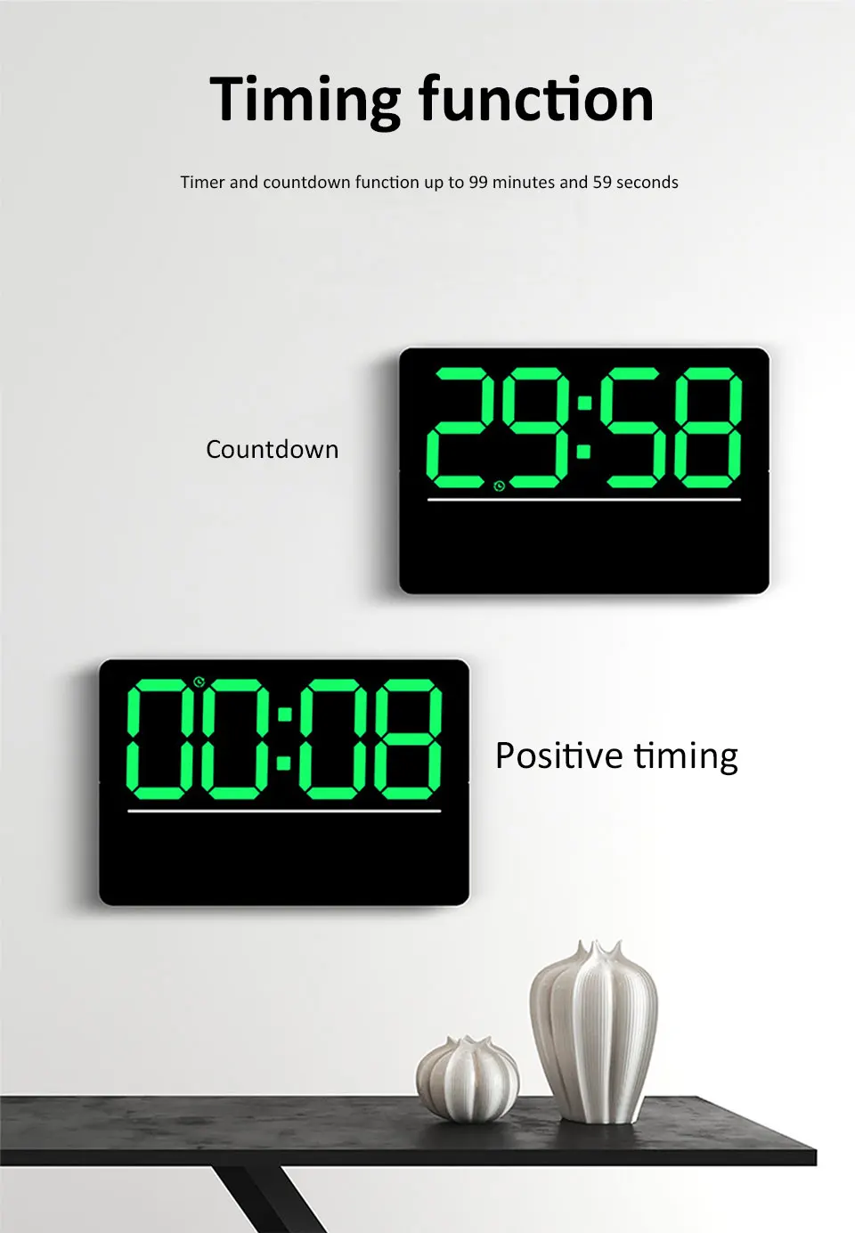 * Positive time, countdown function. The maximum length is 99 minutes and 59 seconds.