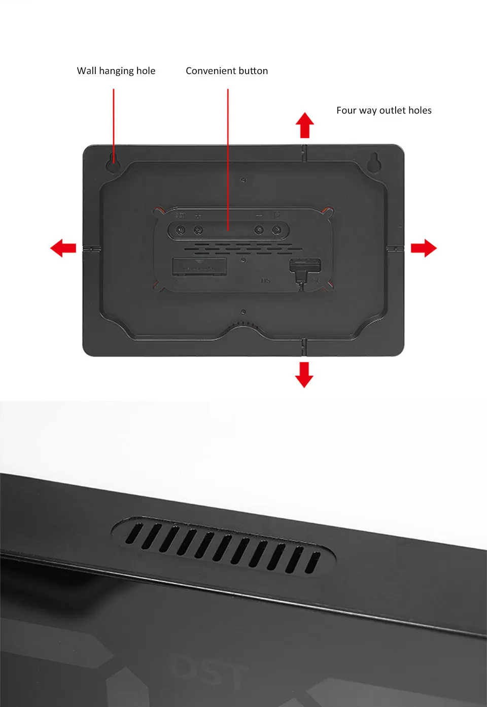 * Time, date, temperature and day of the week are displayed on the same screen.