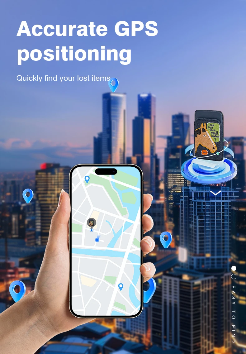 Leather Card Holder Magsafe Magnetic Credit Card Protective Case GPS Anti-lost Mobile Phone Bag Ultra-thin For iPhone16 15 14Pro