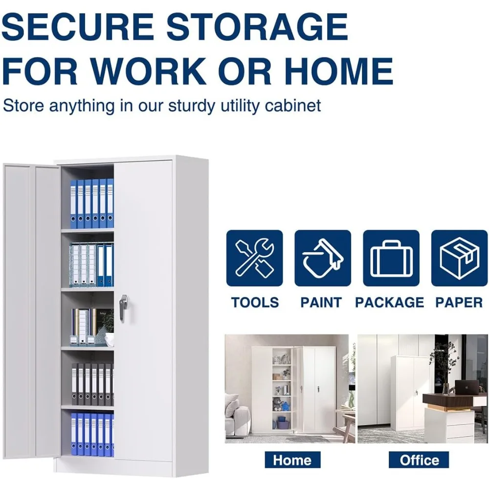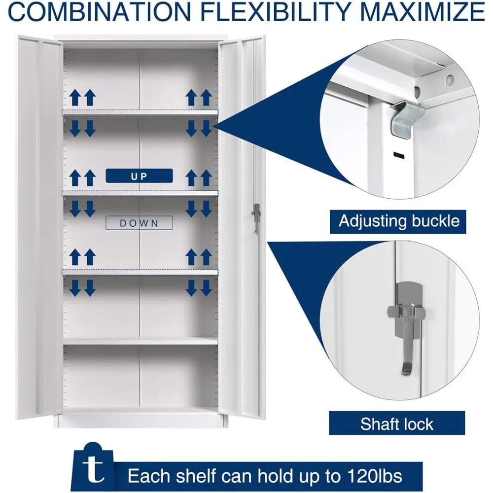 - Premium High-Quality Material Construction: Crafted from anti-rust, scratch-resistant metal, this metal storage cabinet ensures long-lasting durability and a sleek appearance. The environmentally friendly coating protects against corrosion and wear, making it ideal for garages, basements, or home offices while prioritizing safety and sustainability;