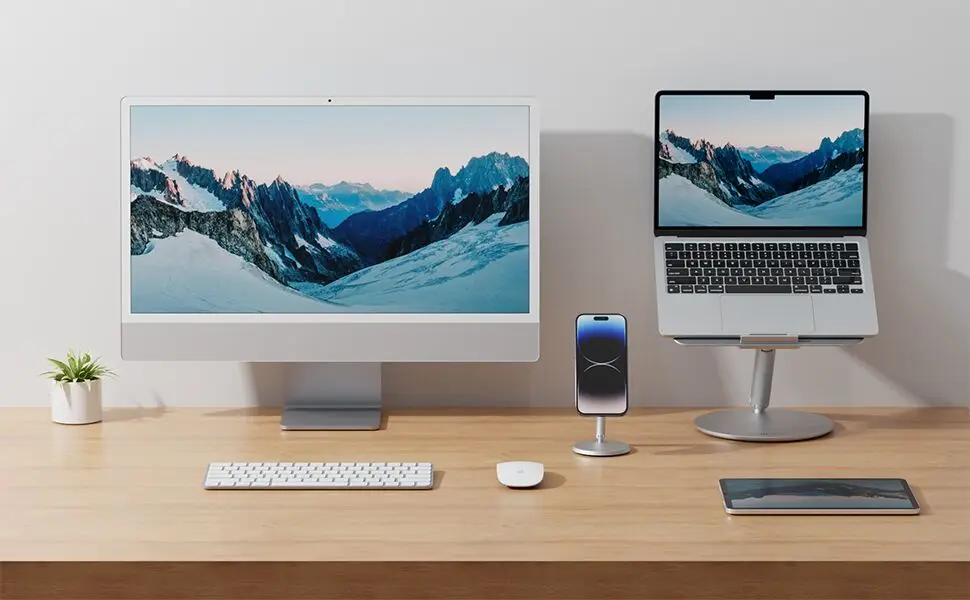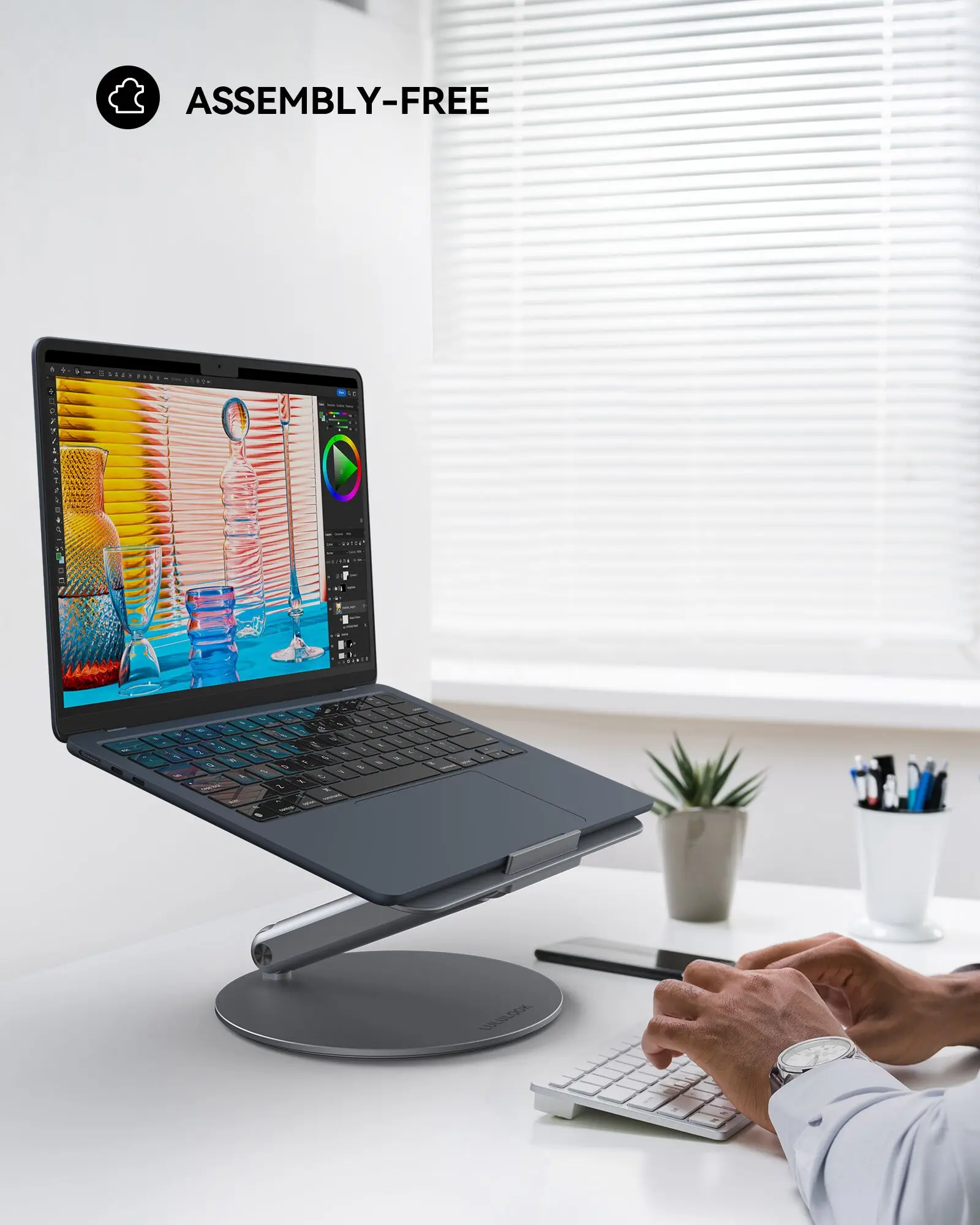 Invisible 360° Rotation Design: LULULOOK rotating laptop stand for desk allows you to easily share your screen with someone sitting across the room or at another desk. This is the perfect solution for anyone who works in an open office plan and wants to participate in meetings without leaving their workstation.It also works great for ideas sessions when collaborating with others over video chat or calls.