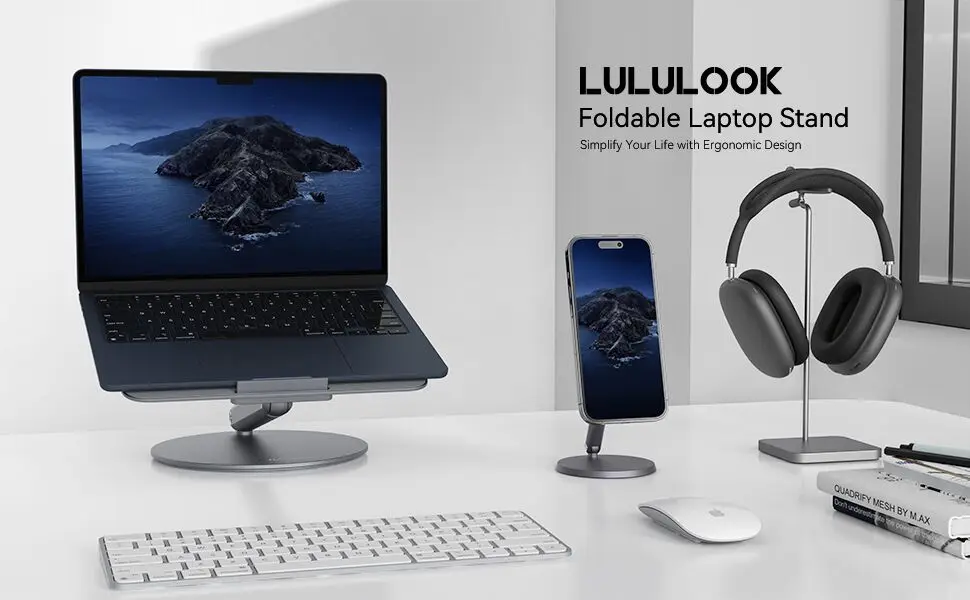 LULULOOK Laptop Stand ,Foldable Notebook Stand with 360 Rotating Base Laptop Holder For MacBook Pro/Air,Dell,Laptops (10-17inch)