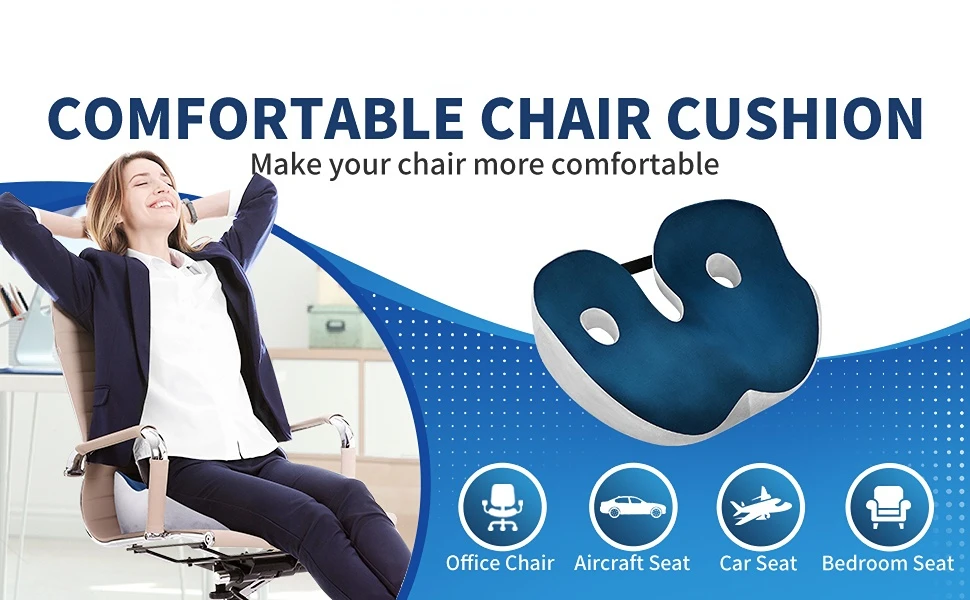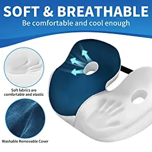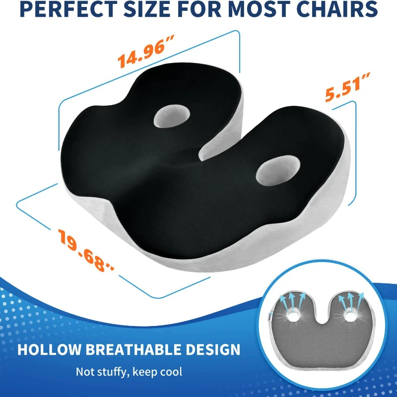 【Ergonomic Design】 The office chair cushion adopts the ergonomic U shape design, no matter what your body type, can fit perfectly with the chair cushions. The U-shaped groove designs helps relieve pressure on your tailbone. Because the chair cushion fits your hips and legs perfectly when you're sitting in a chair. In addition, the seat cushion in the middle of the hollow design, very breathable, not stuffy, keep cool.