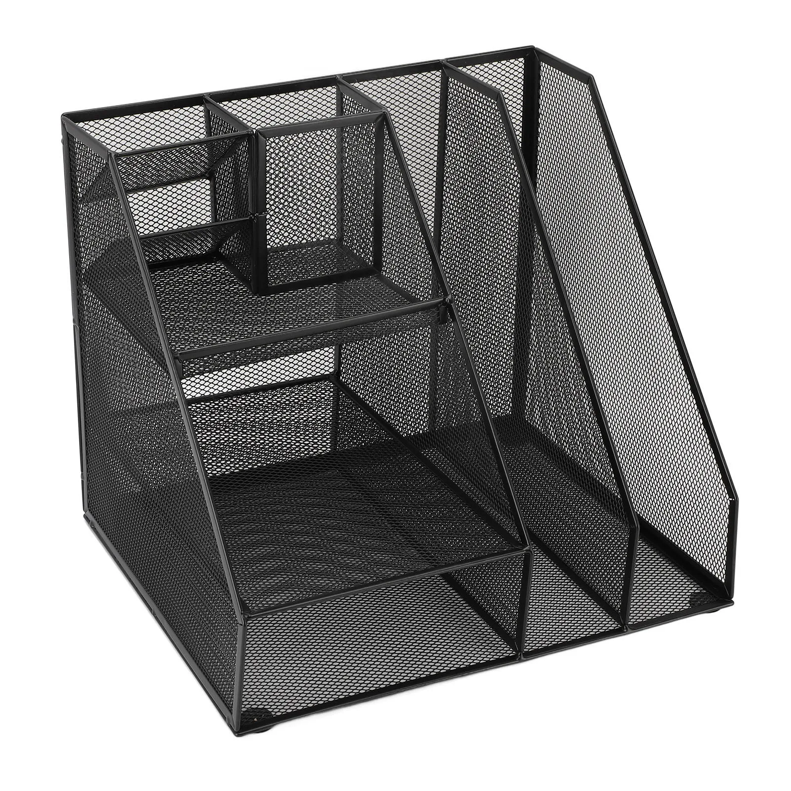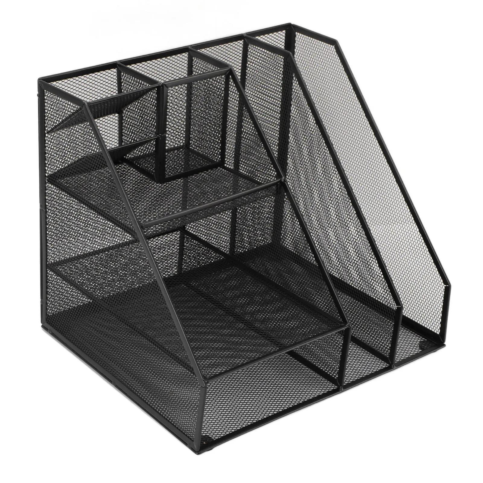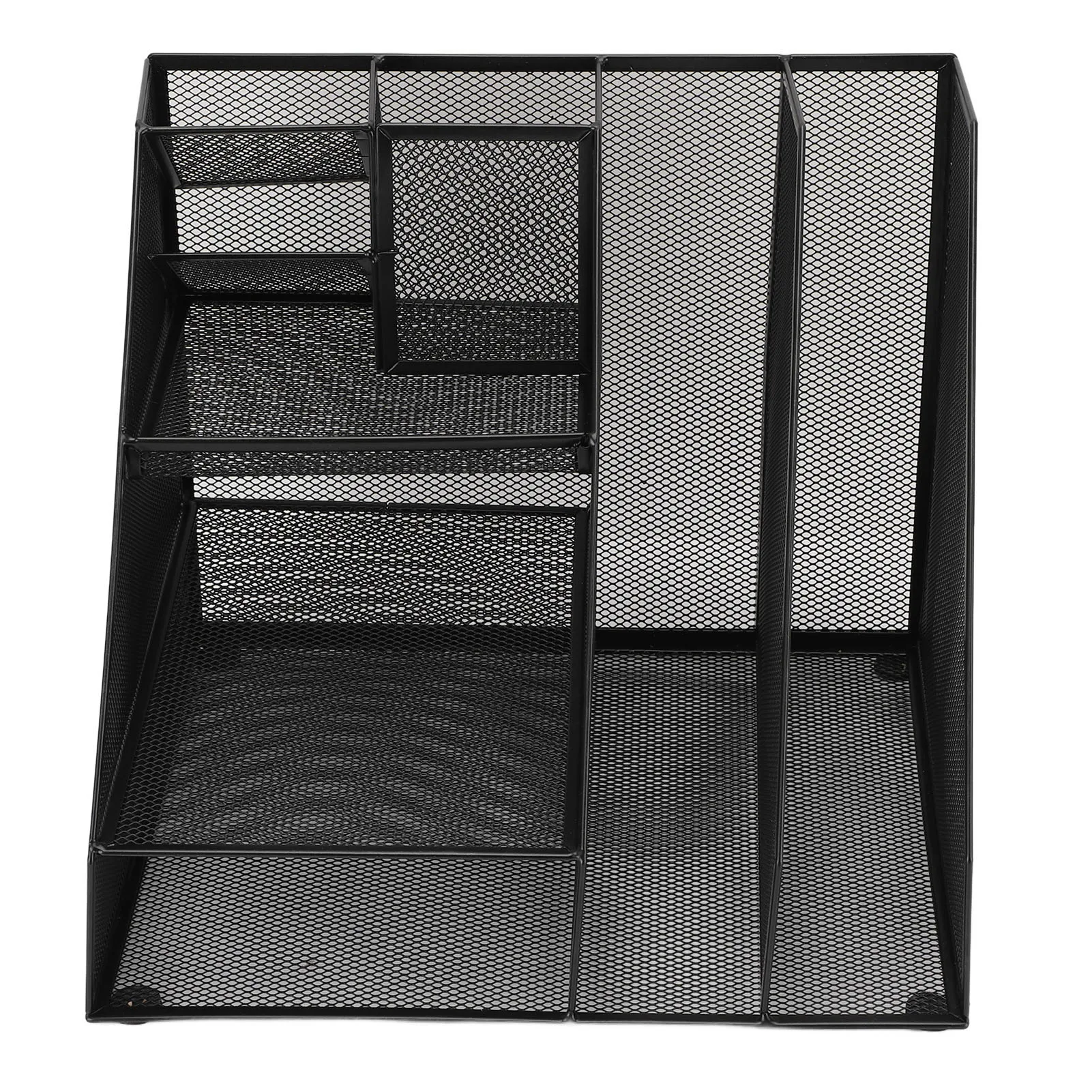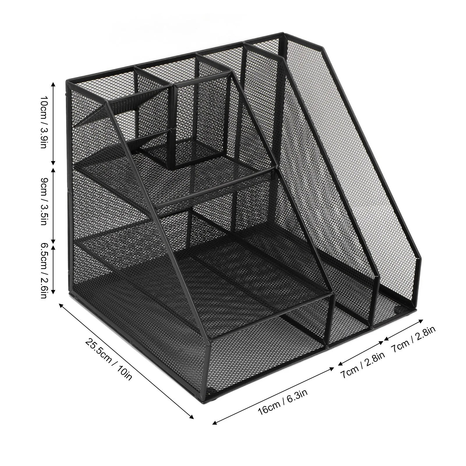 Metal Mesh Desktop Organizer Black Iron Multifunctional Office Supplies Organizer with Pen Holder for Home School:
