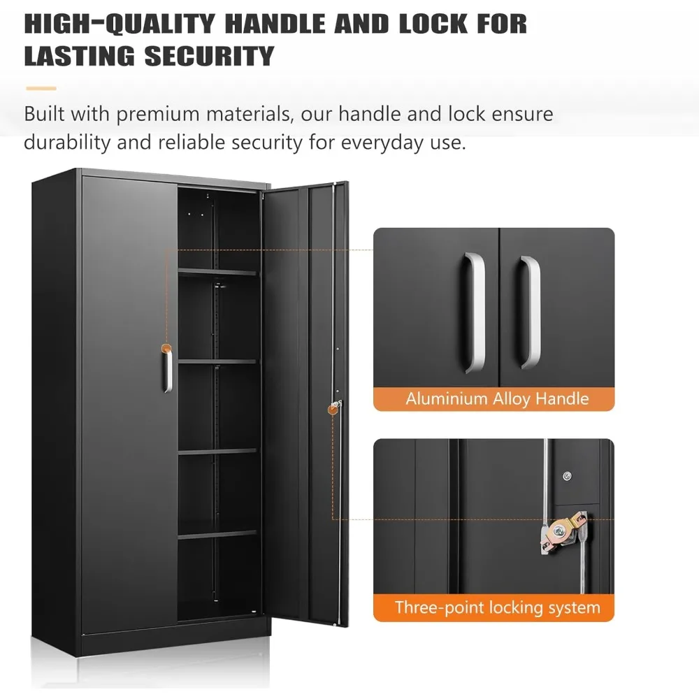 - Exceptional Durability and Outstanding Security: Crafted from high-quality cold-rolled steel plate, our metal cabinet boasts robust construction for long-lasting durability. Enhanced with advanced lock cores and a three-point locking system, it guarantees the security of your valuable items. Ideal for locking cabinets in the garage or tool cabinets in workshops.
