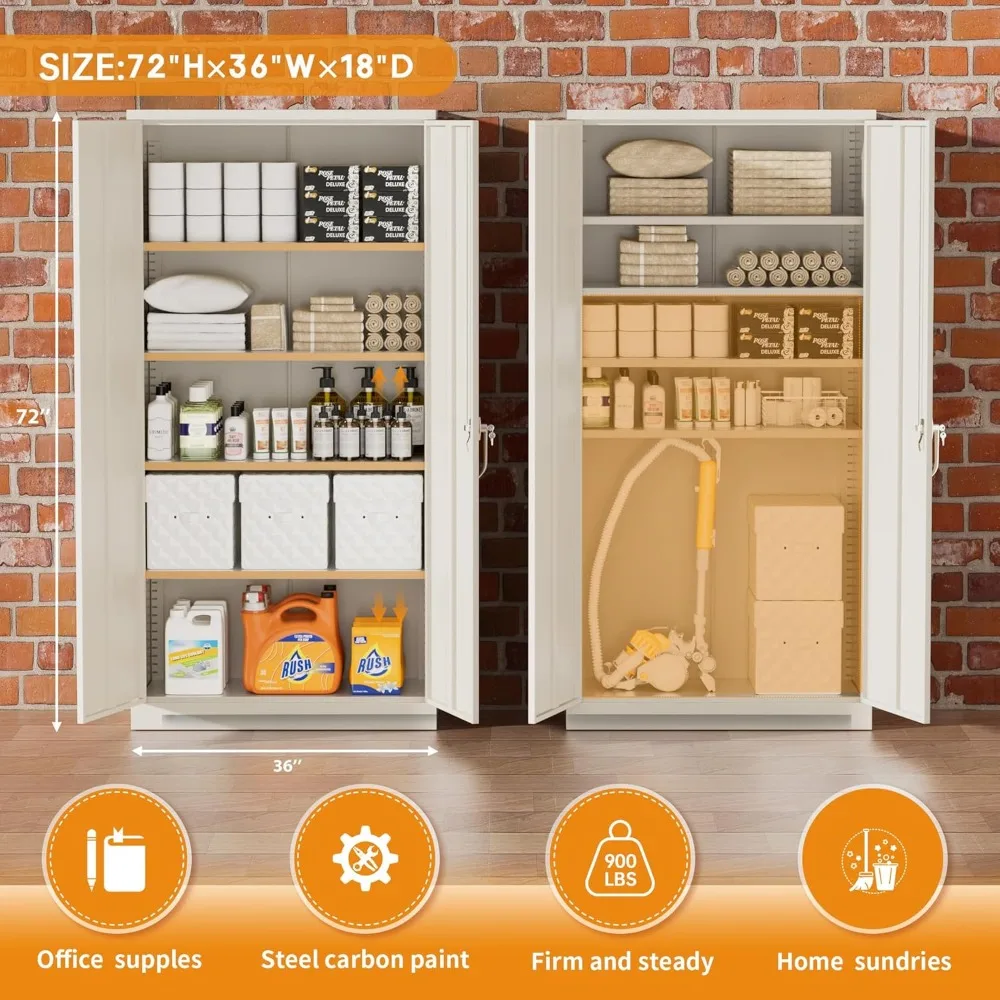 - 【Bucket Storage】: Our metal office cabinets are equipped with 4 adjustable shelves, each with clip support, garage mounted storage system can hold up to 180 lbs (about 81.6 kg), you can easily fit in 2 inches (about 81.6 kg) 5.1 cm) center to adjust the shelf or remove it. The same goes for your storage as your needs change. Strong enough to store everything your office needs.