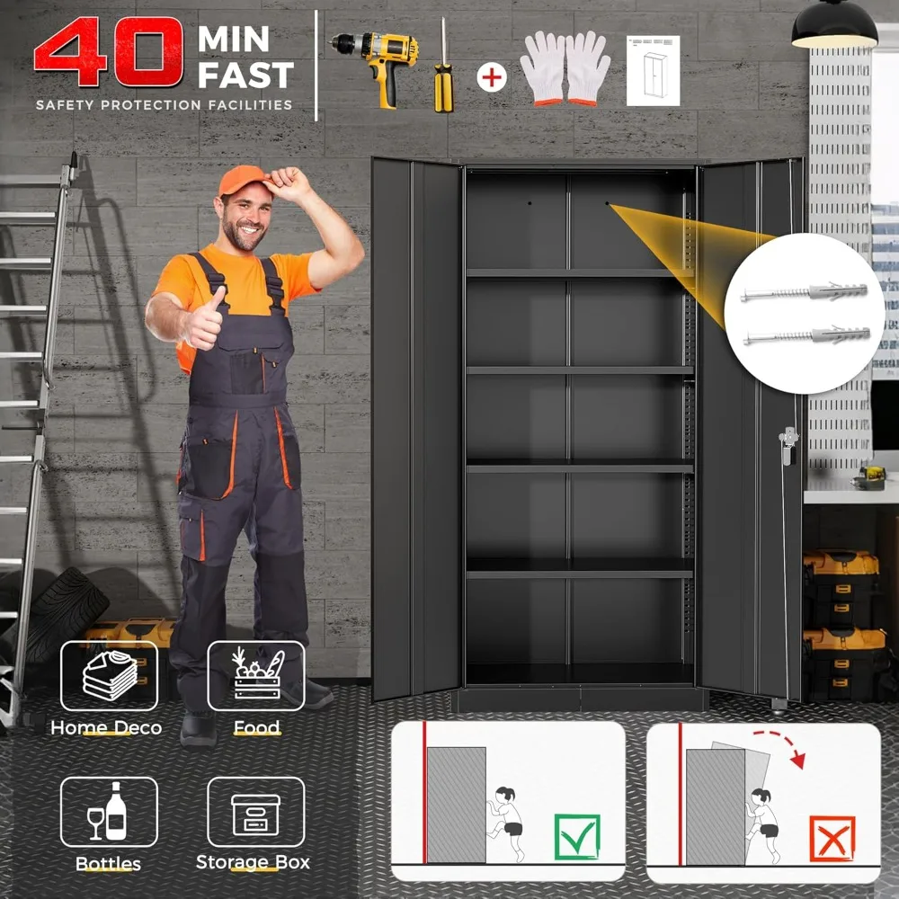 - 【Design to prevent tipping】 tall metal cabinet has added anti-tipping design and high-quality large metal storage cabinets can be fixed to the wall. Prevent the metal storage cabinet from tipping forward due to heavy objects, protecting your and your family's safety. garage storage cabinets for storage with doors can also ensure the storage of more and heavier tools in areas such as a basement, living room and car repair shops.