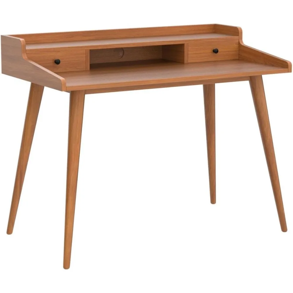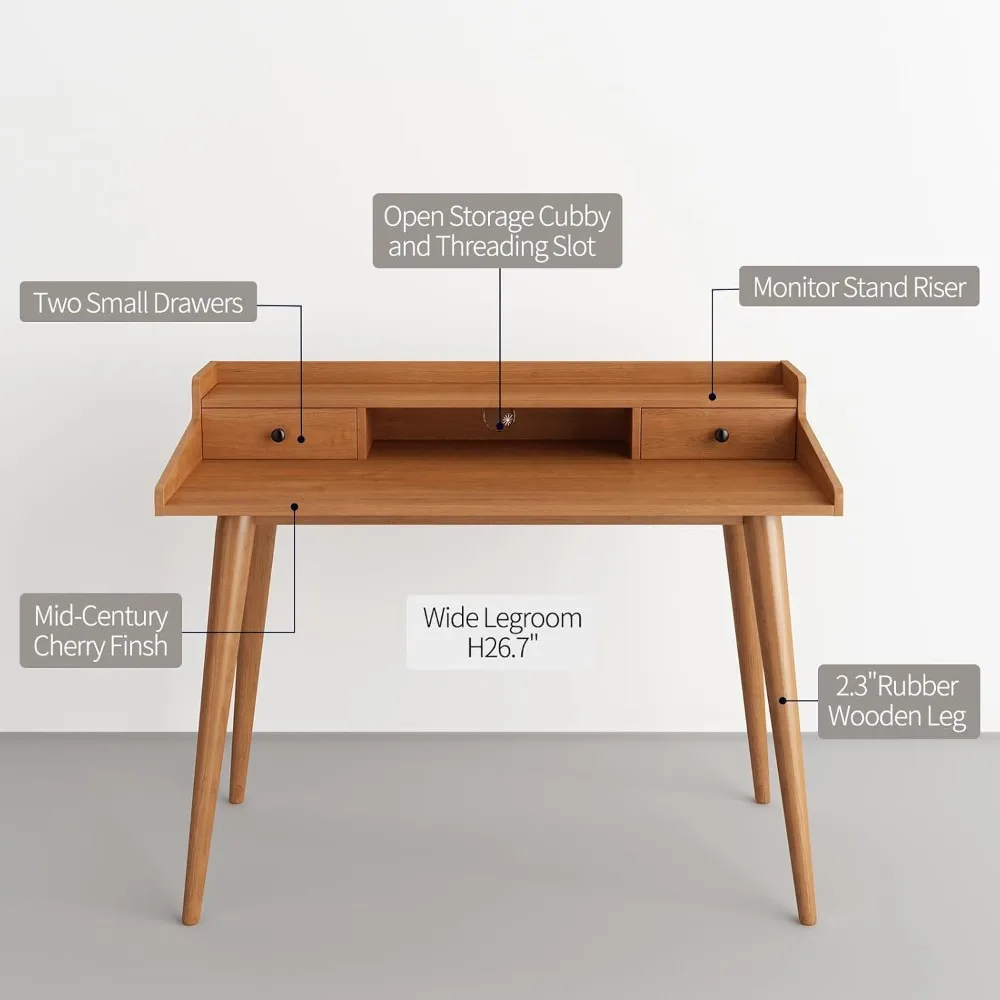 • The mid century modern desk made of cherry finish MDF table top and solid rubber wood legs, smooth lines of table body, suitable for any scene.