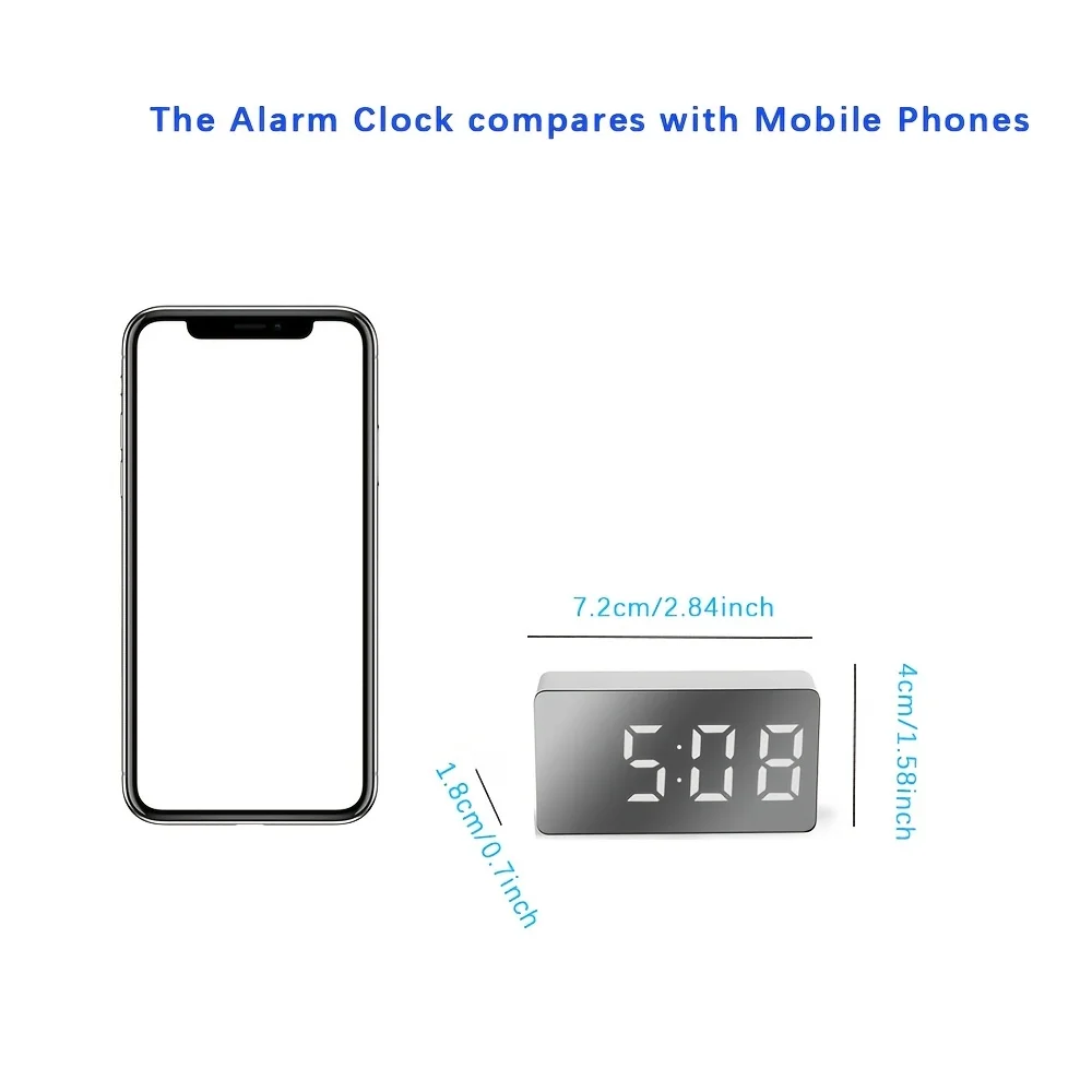 Mini LED Electronic Clock Mirror Watch Smart Small Alarm Clock Desk Digital  Mini Table Clock for Bedroom Decoration