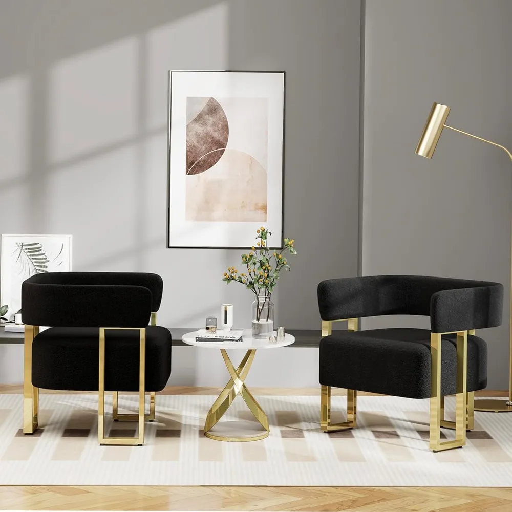 - Boucle Design: Upholstered in plush teddy fleece, these boucle accent chairs provide a luxurious touch and feel. The high-density sponge filling ensures that the seats maintain their shape, delivering long-lasting comfort for extended periods of sitting. Enjoy the perfect blend of style and comfort in your home.