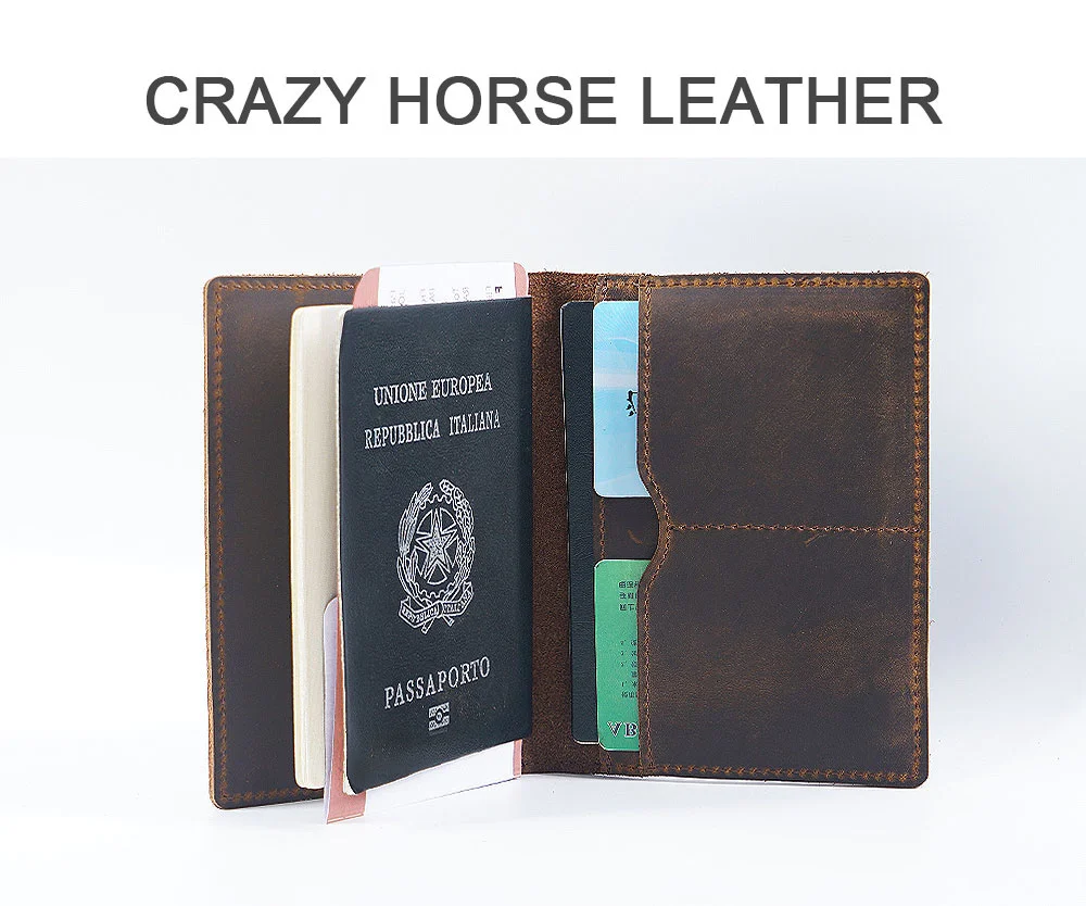 Crafted from 100% top-layer cowhide Crazy Horse leather, this passport cover boasts exceptional durability and a unique vintage aesthetic. The natural distressing of the leather develops a rich patina over time, ensuring your holder becomes even more distinctive with age.