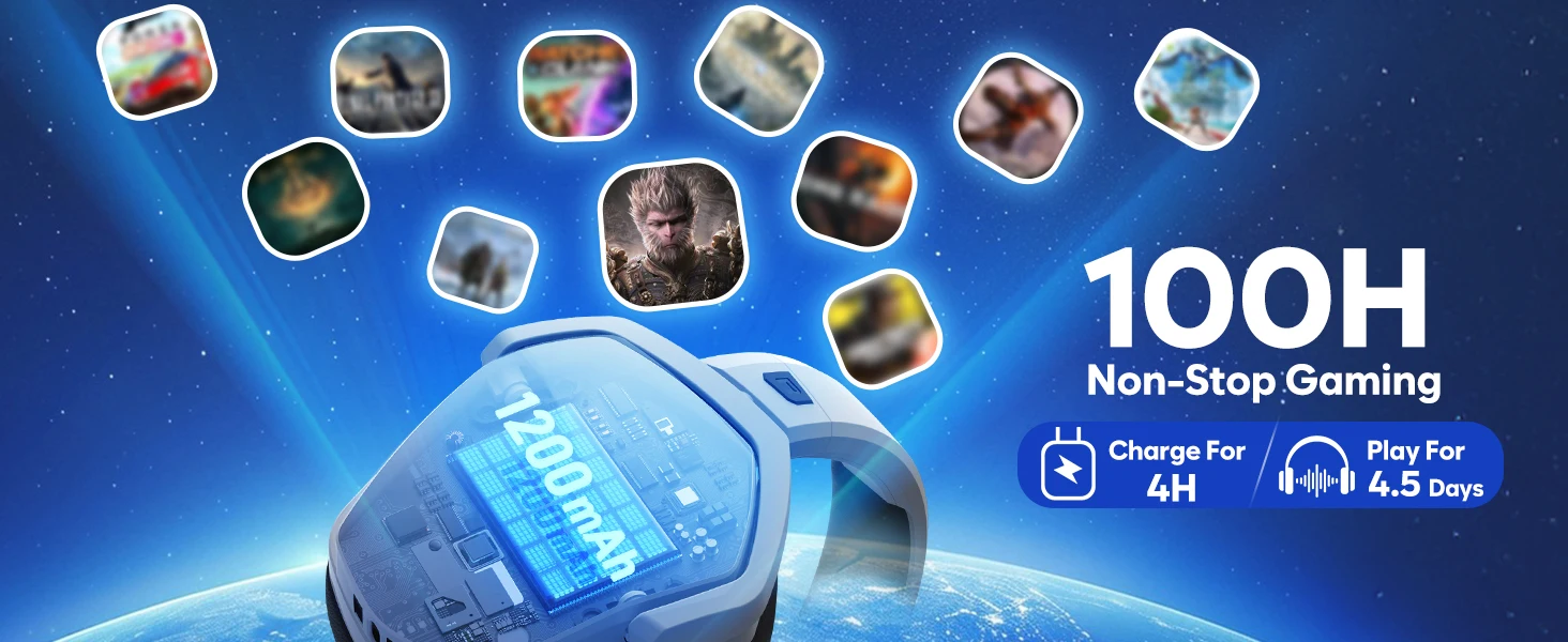 Extended Gameplay Hours - Stay in the game longer with up to 100 hours of battery life. When it's time to recharge, be back to full power in just 4 hours. Elevate your gaming sessions with a headset that's designed for endurance.