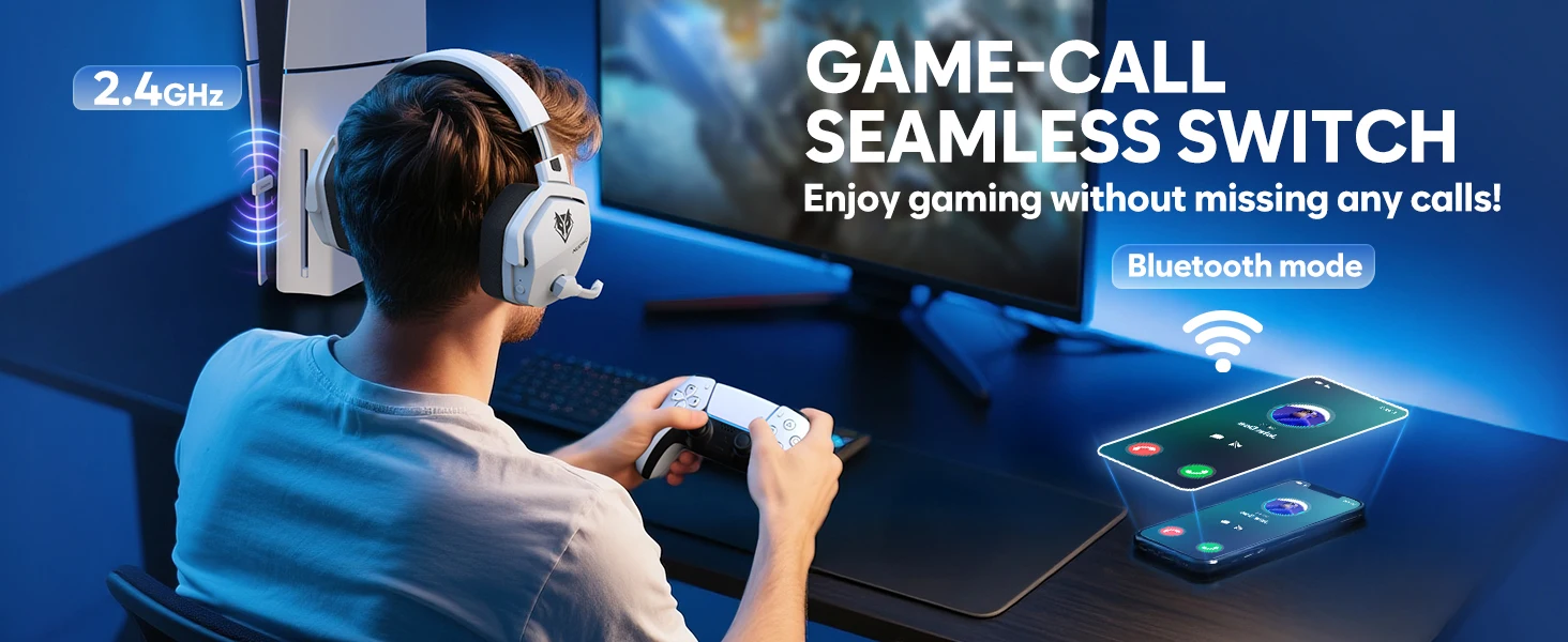 Switch between the game and reality seamlessly - G06 simultaneously connects to PC/PlayStation and phones. Without pausing your game, answer or hang up with just a click, or mute by holding for 1 second.