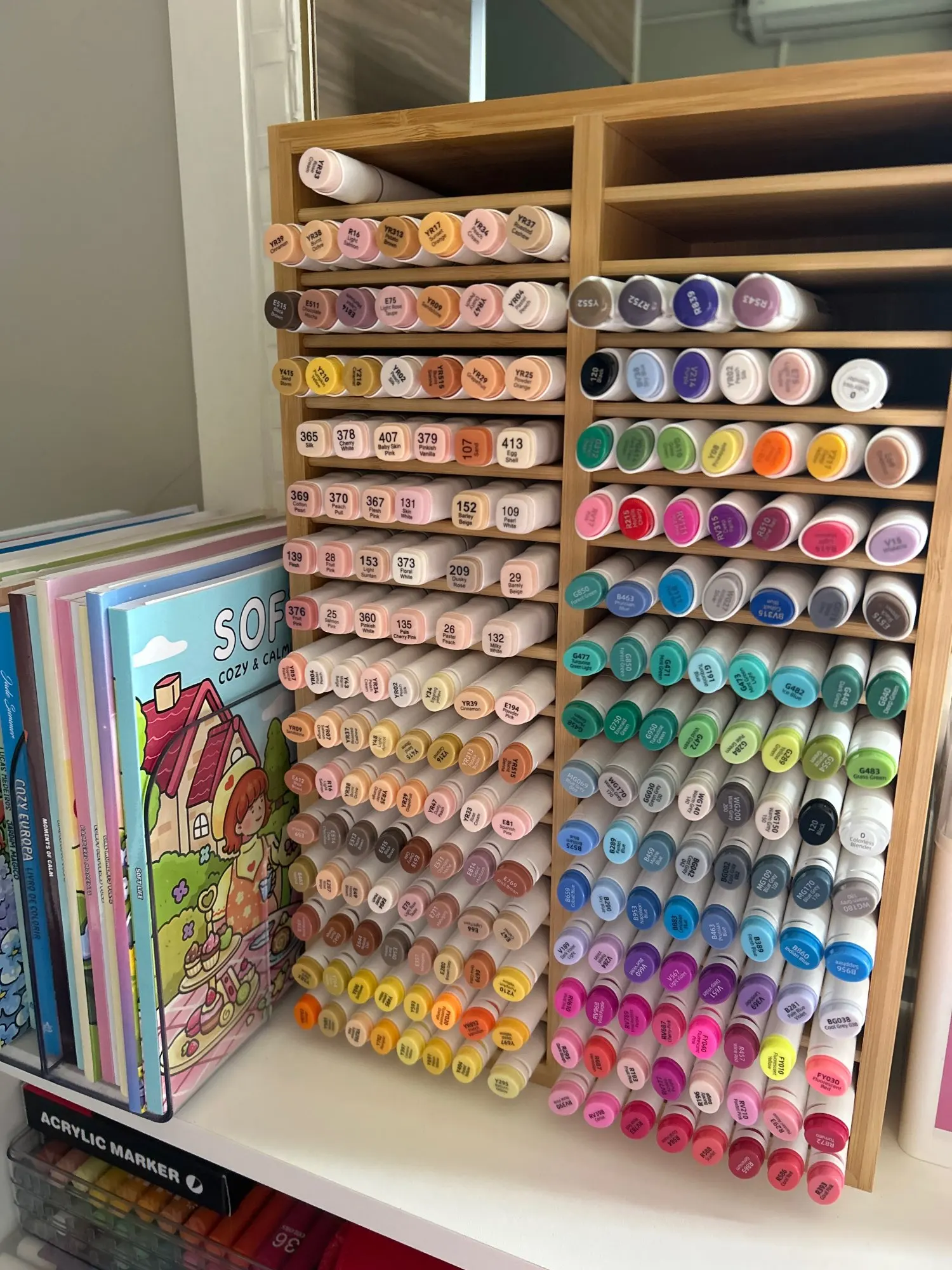 With 32 compartments, this marker holder can hold up to 224 alcohol markers. Keep your markers organized, clean, and ready to use. It's perfect for art teachers, students, and anyone seeking to keep their art supplies impeccably arranged will appreciate its stylish appeal.