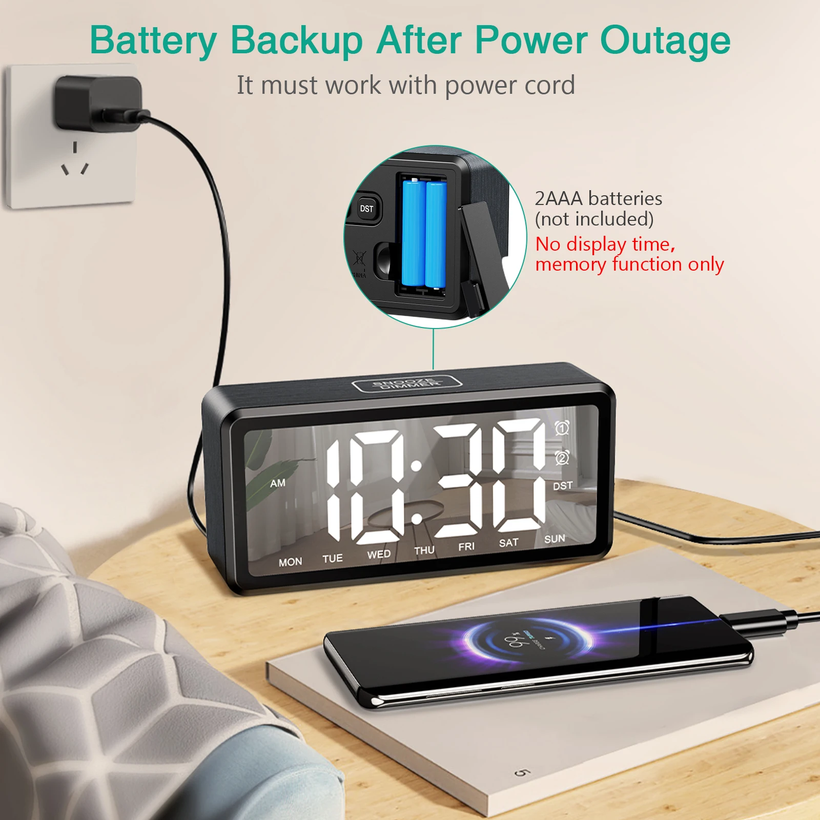 【Versatile Time Display Features】: Equipped with an LED screen, it clearly shows the time and day of the week. You can easily switch between 12 - hour (default) and 24 - hour formats, and also take advantage of the DST (Daylight Saving Time) mode for seamless time management.