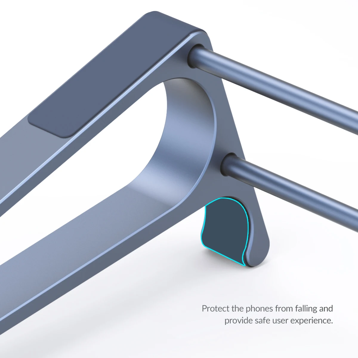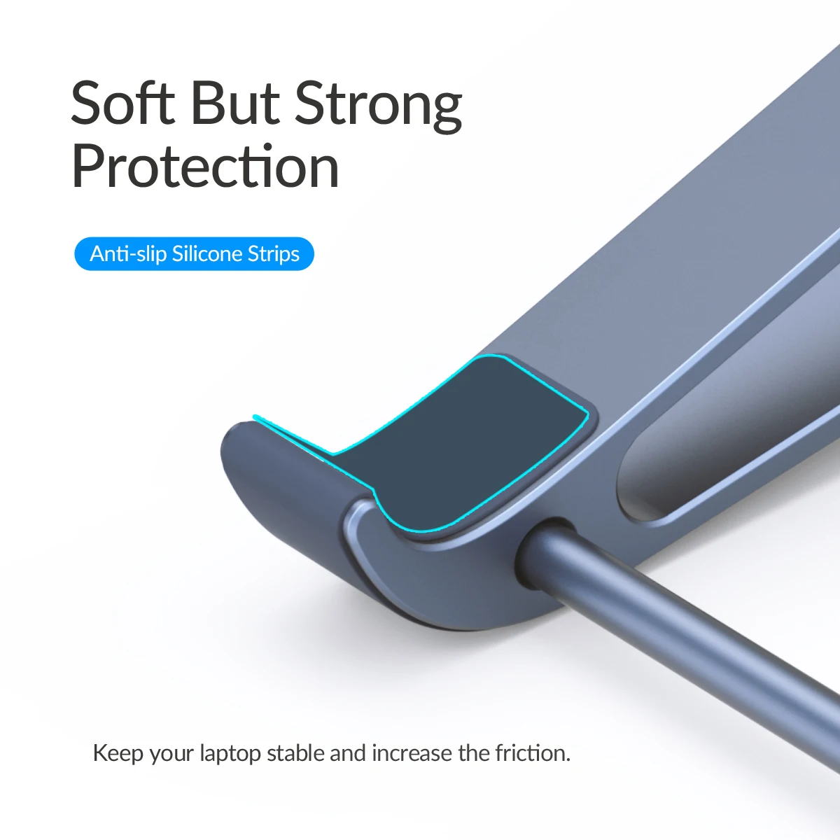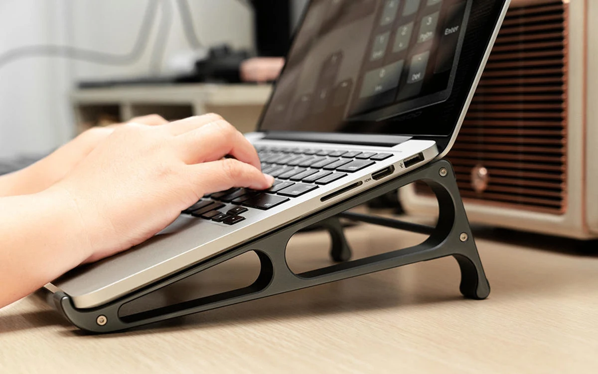 It is made of quality aluminum alloy, stable and sturdy,Triangular structure design,you don't worry about shaking. The silicone pads on the holder to pare durable and non-slip, which protects the computer from scratch and sliding off. The silicone pads at the bottom of the bracket ensure the product stand stable even when typing. and arc corners feel smooth and comfortable,bring you a better experience.