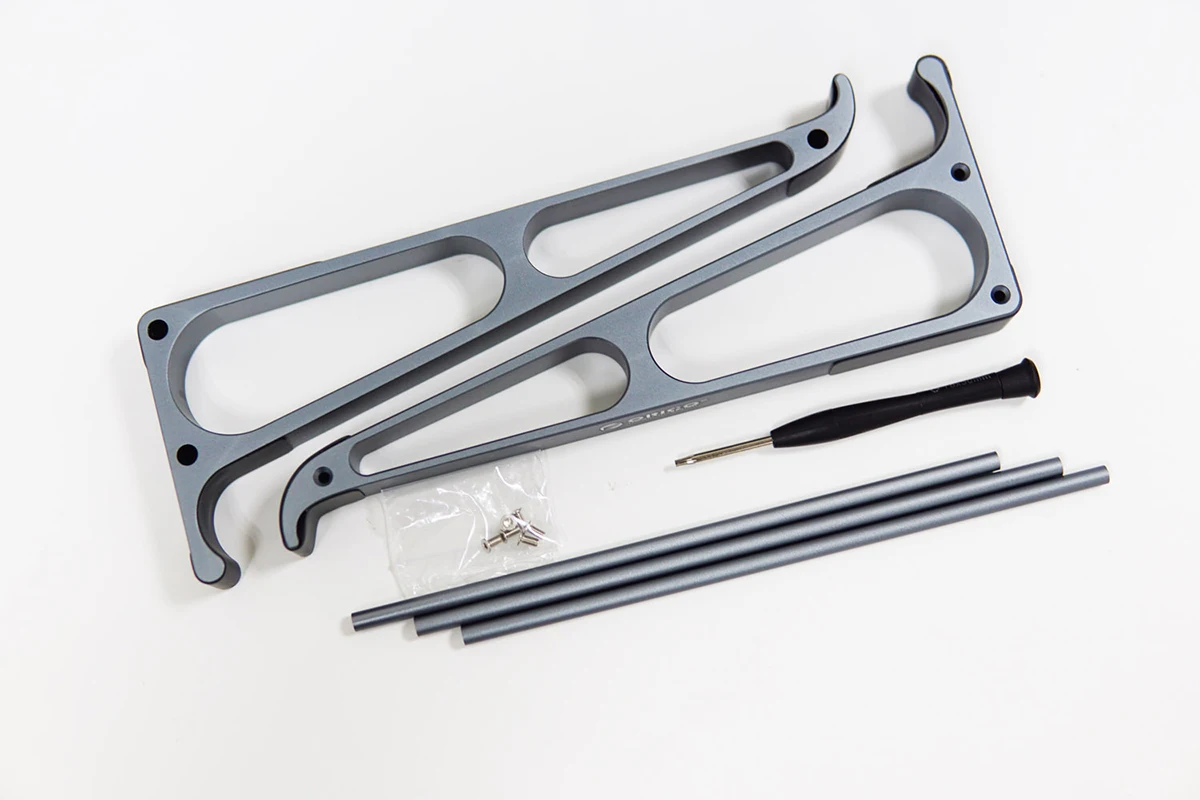 2. Insert the 3 cylindrical shafts the corresponding screws holes of the bracket.