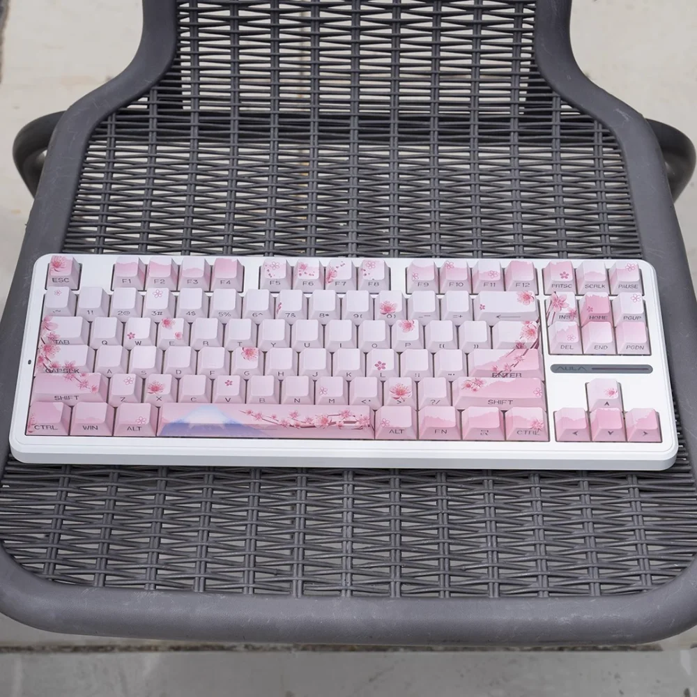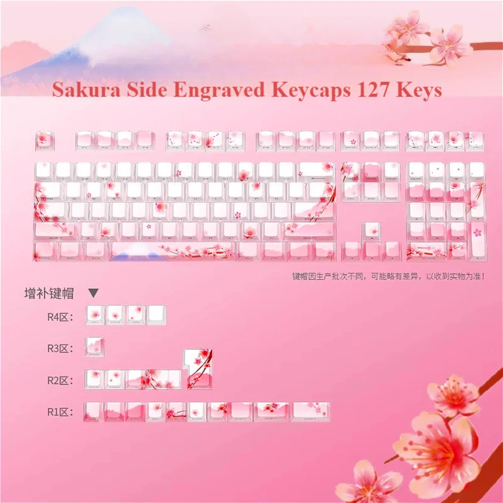 Sakura Keycaps PBT 127 Keys Side Engraved Translucent Pink For 60/64/84/98/108 Mechanical Keyboard Accessories