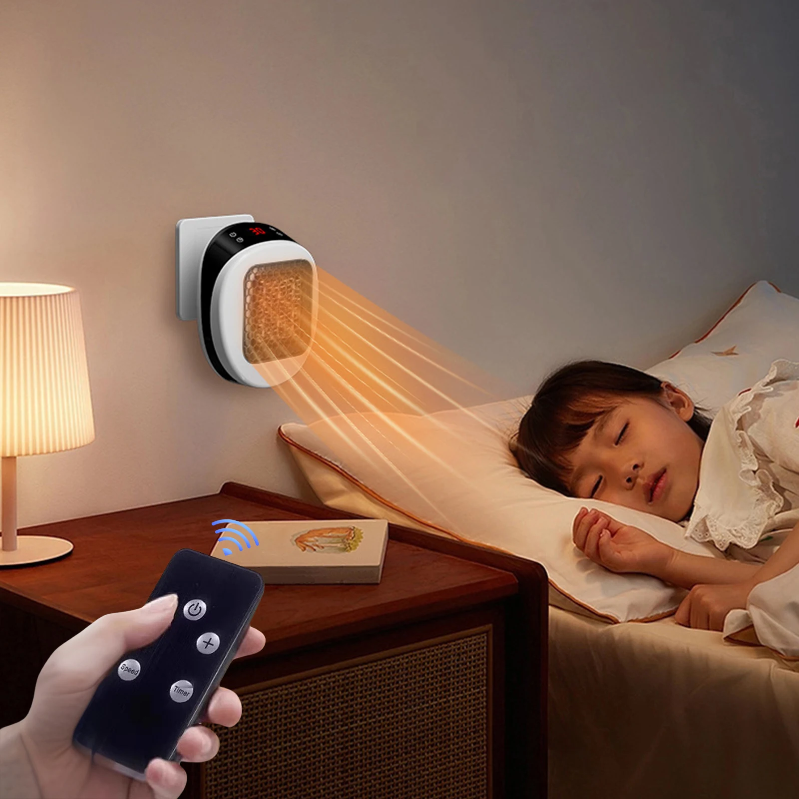 2.Rapid Warmth Anywhere: Utilize the wall outlet space heater with advanced PTC ceramic heating for even heat distribution and low-noise comfort. Enjoy wireless remote control, multiple safety protections, and flexible use in various scenes.