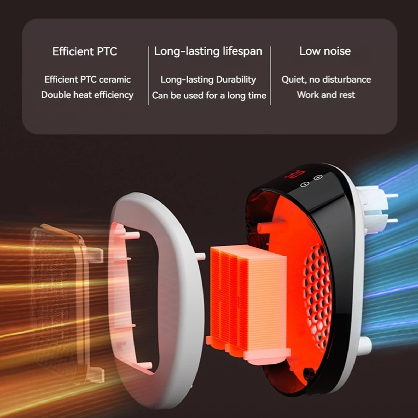 4.Efficient & Quiet Operation: The portable electric heater features high-pressure-resistant ceramic elements for swift temperature rise and whisper-quiet performance, making it suitable for work or rest without disturbance.