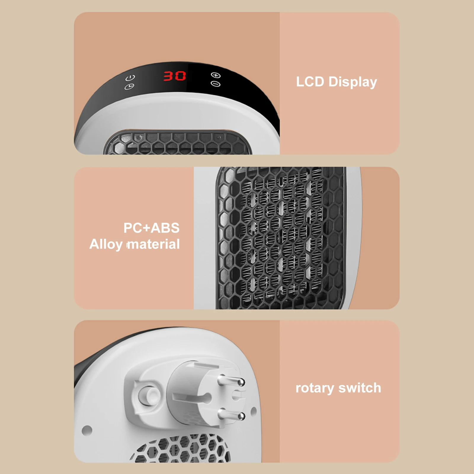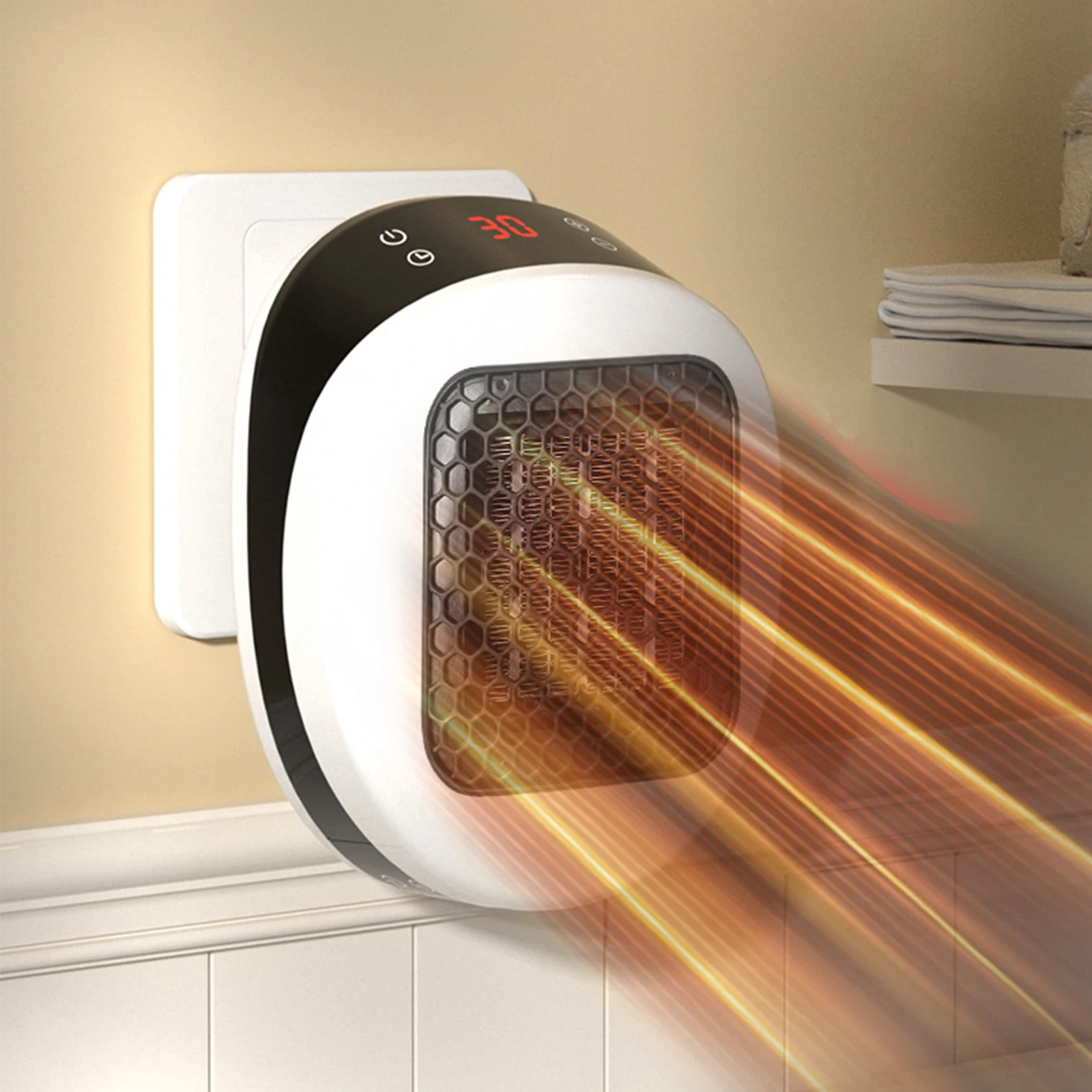 1.Effortless Heating: This plug in heater offers instant warmth with a simple one-touch operation. The wall-mounted design keeps it off the floor, saving valuable space while its compact build allows for easy storage when not in use.