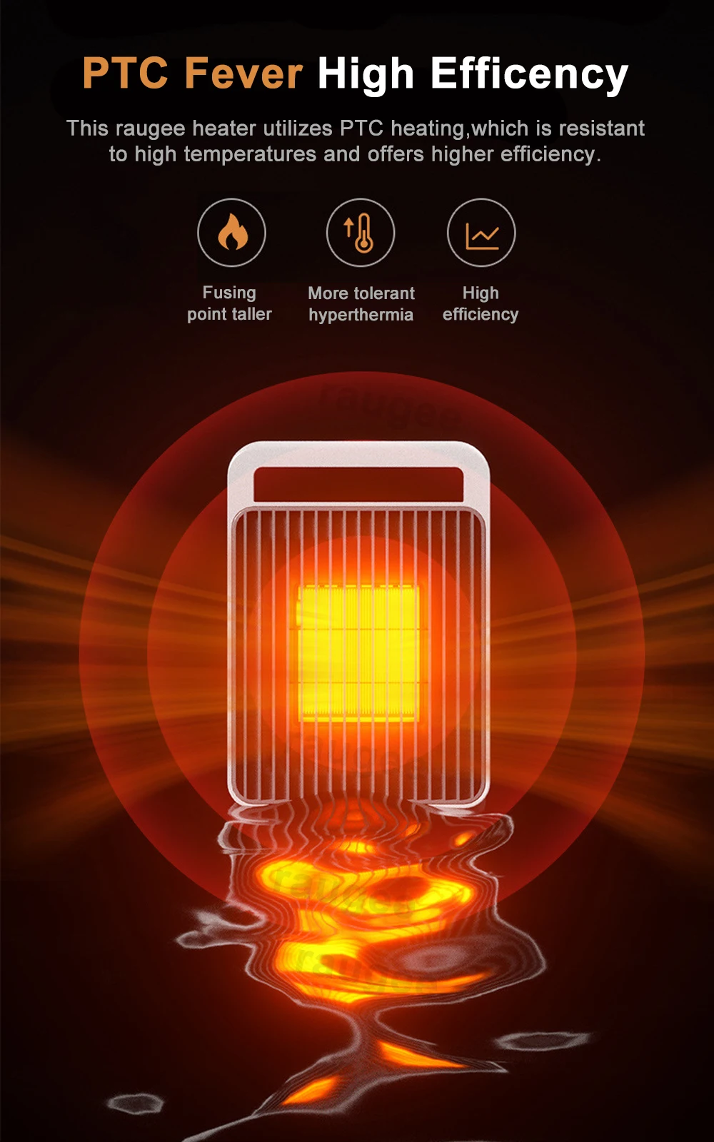 【Portable and Powerful】 The 210mm*150mm*103mm raugee portable heater with carry handle you can carry it with you easily in anywhere.Small but powerful,makes you warm up in cold Winter.
