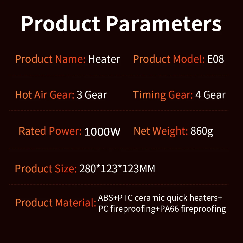 【Intelligent Timing 】 Raugee Hot Air Blower Has 1-2-4-8 Intelligent Timing,you Can set it at night.