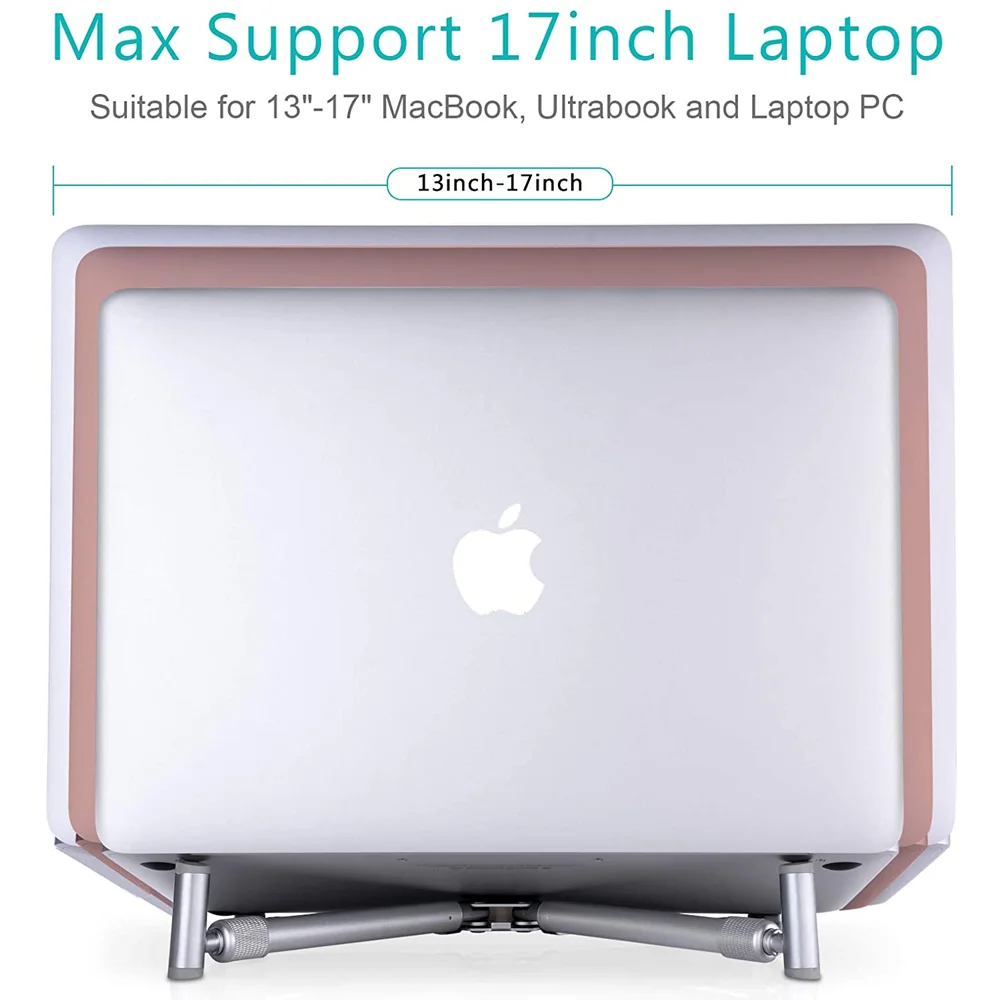 The base of the laptop stand is very wide, which can comfortably support for Apple MacBook Pro, for MacBook Air and other laptops with a maximum screen of 17 inch (new version).