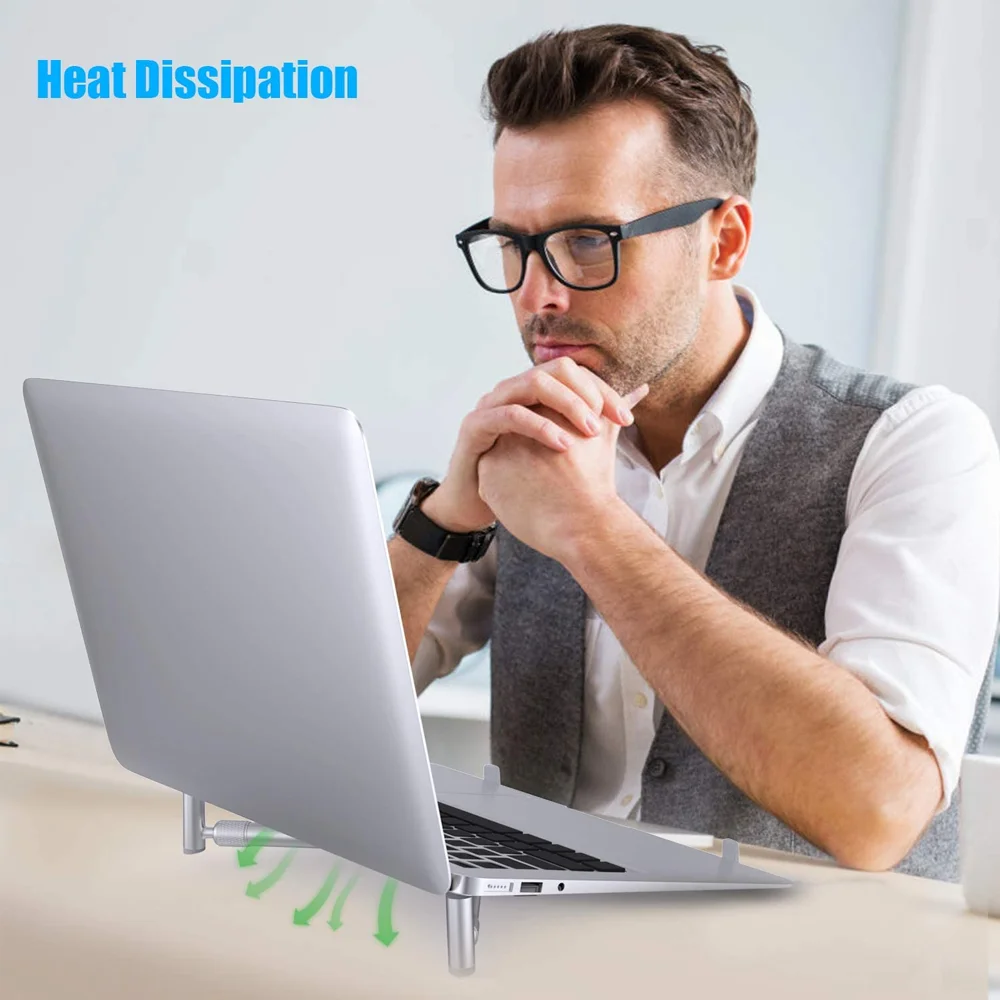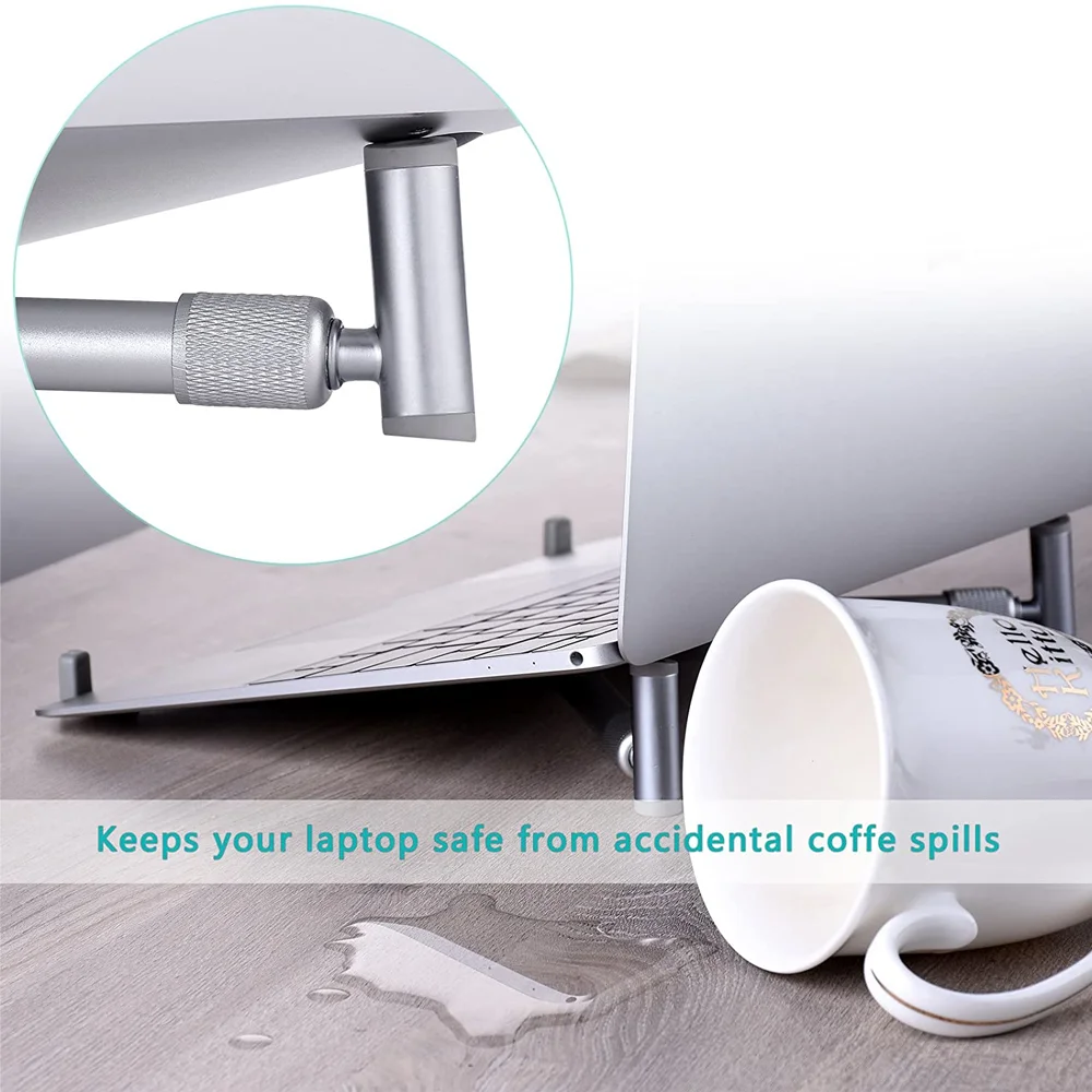 Tilt the laptop at an almost perfect angle to achieve more comfortable and ergonomic typing; to help you write faster and provide better posture for your hands while having a higher head to avoid neck issues.
