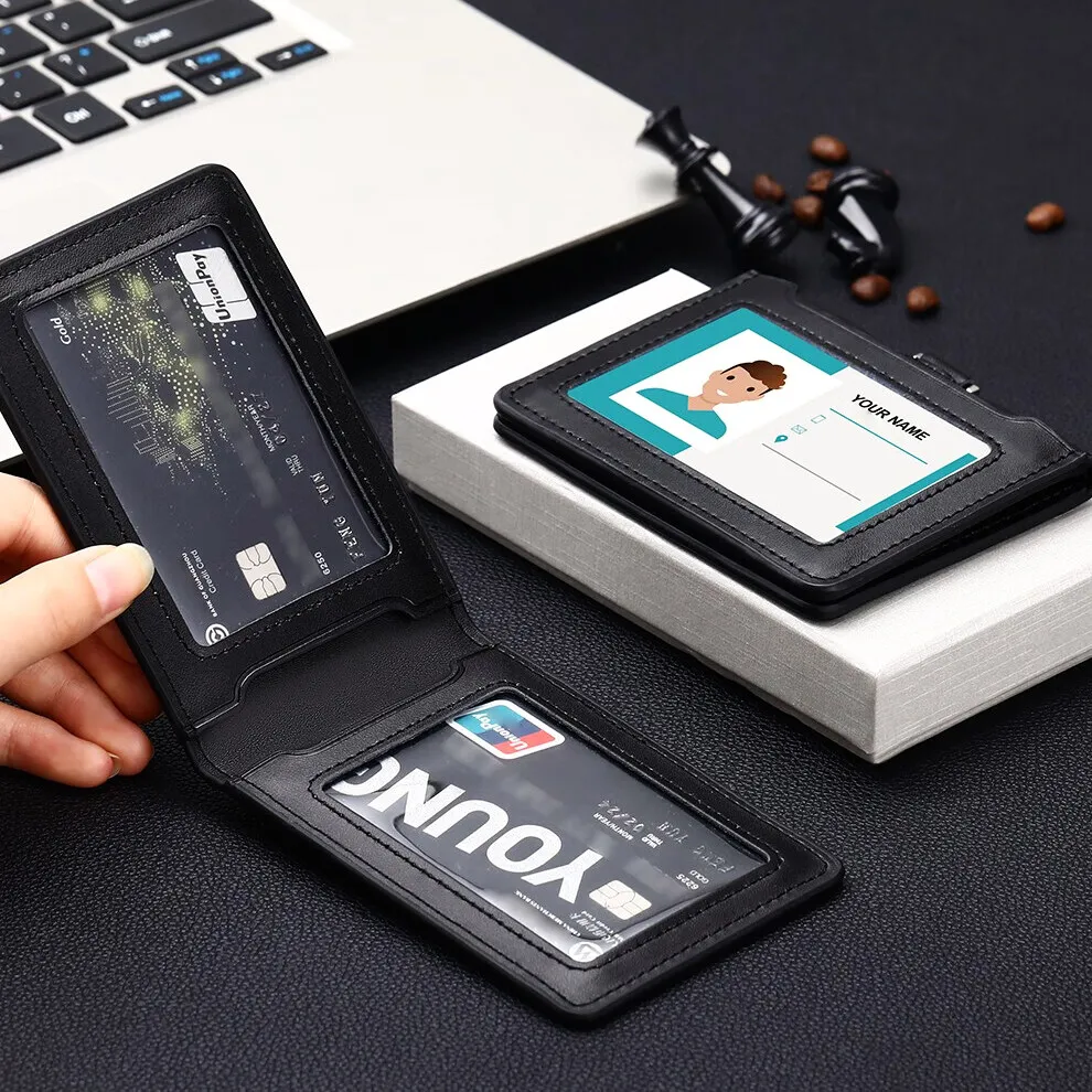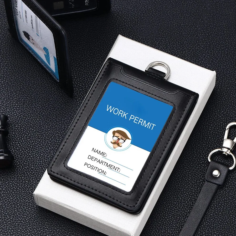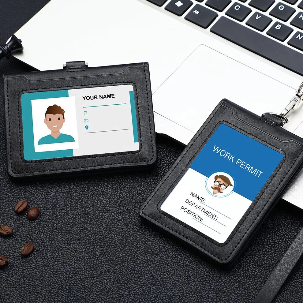 Name:Card Holder Material: Cowhide leather LanyardMaterial: PU Closing method: Magnetic Closure Lanyard size: about 18.9inch/48cm (Fold in half ) Card holder size: 4.33x2.95inch / 11.5x7.5cm (L*W) Fit Card Size: 3.38x2.12inch / 86x54mm (L*W) Capacity: 3 Card Slots Set: Card holder*1 + lanyard*1