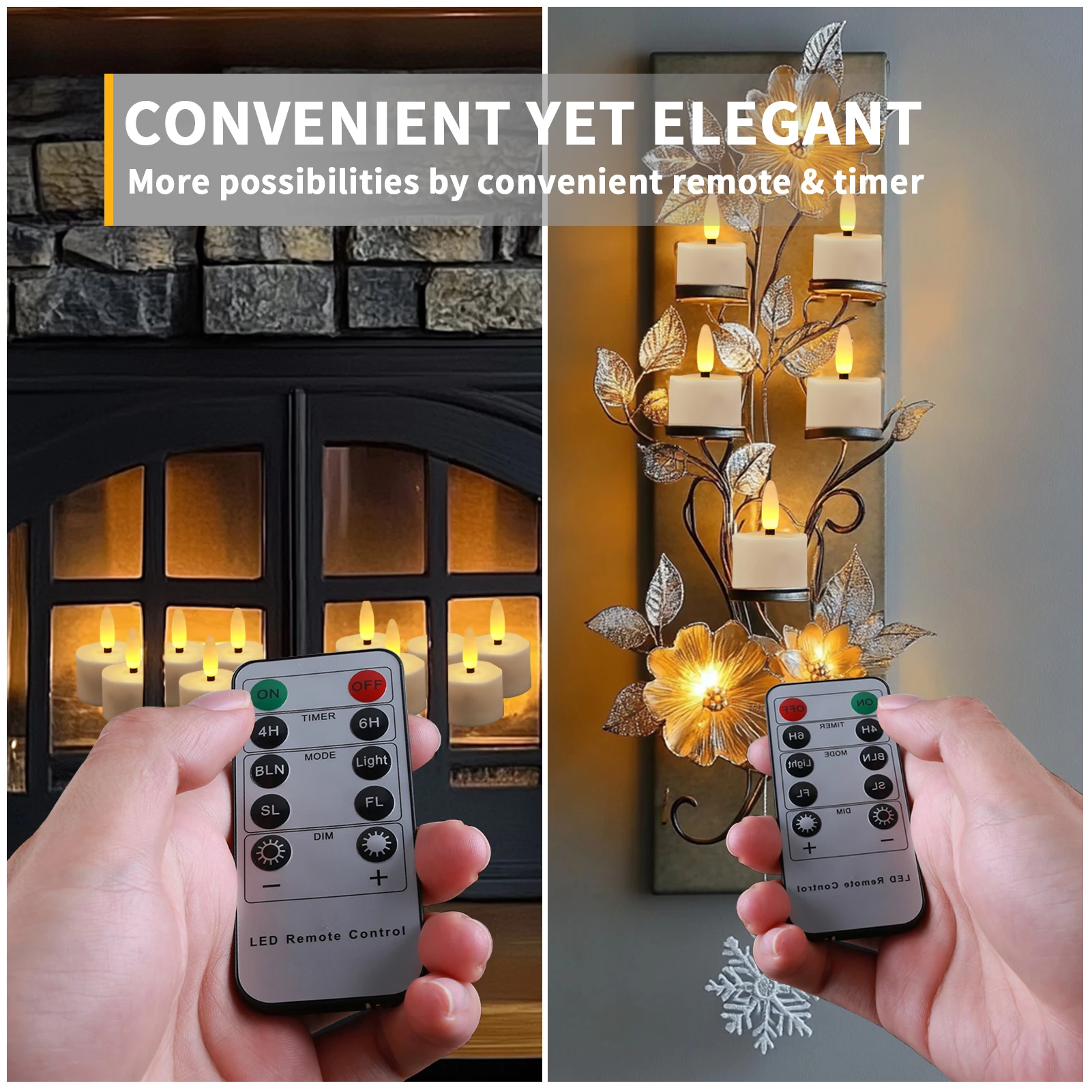 ✔️Convenient Timer & Remote: Once turned on, they will automatically come at the same time every day, you will never come home in the dark. 4H and 6H timing functions can last approximately 7 days and 5 days respectively. The steady-on mode would last about 22 hours, which is 5 times longer than burning tea lights.