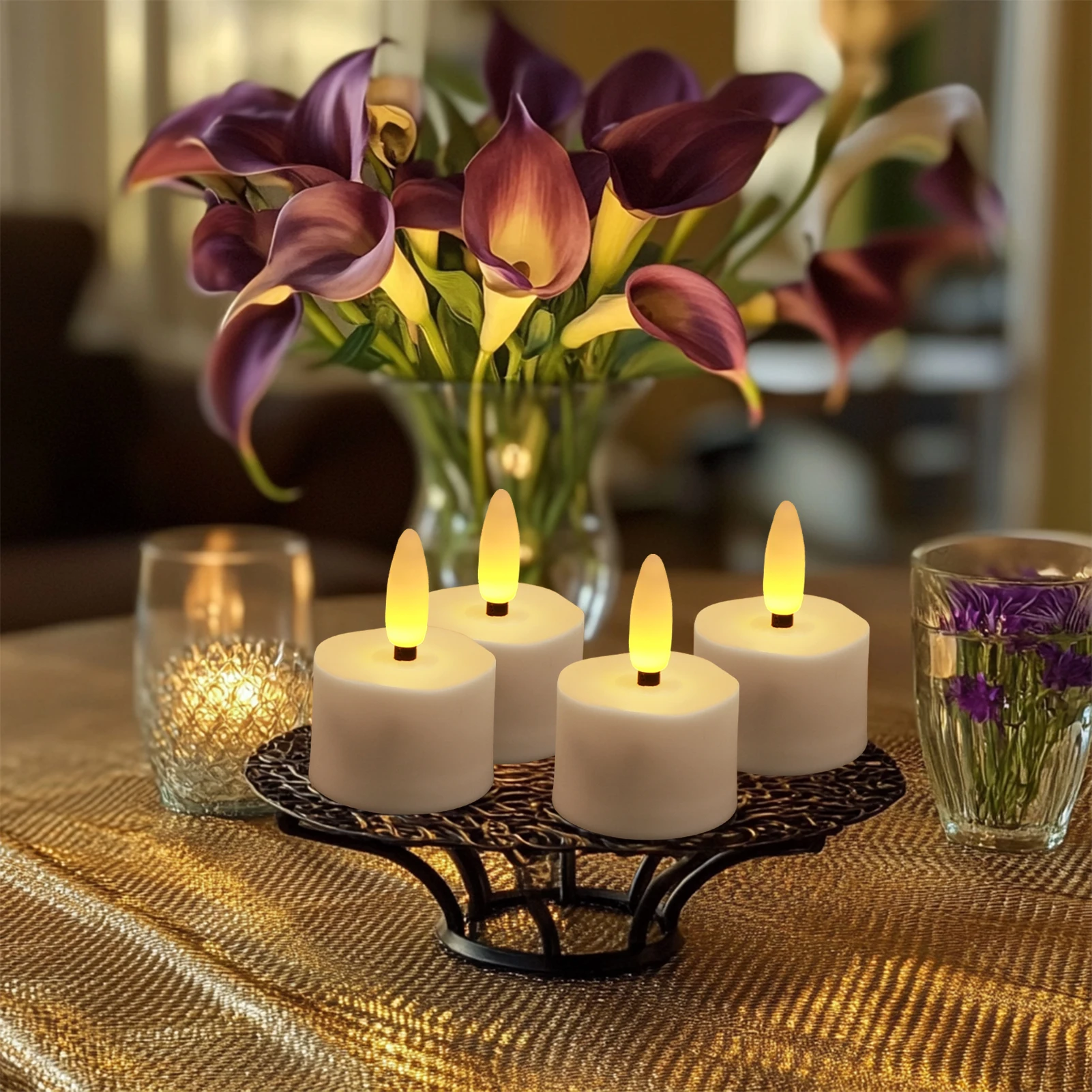 ✔️Easy to Recharge: No more struggling to open the battery compartment to replace the battery, or worrying about the candle being difficult to insert into the charging base. rechargeable tea lights use a spider-web-type cord system to easily charge the candle.