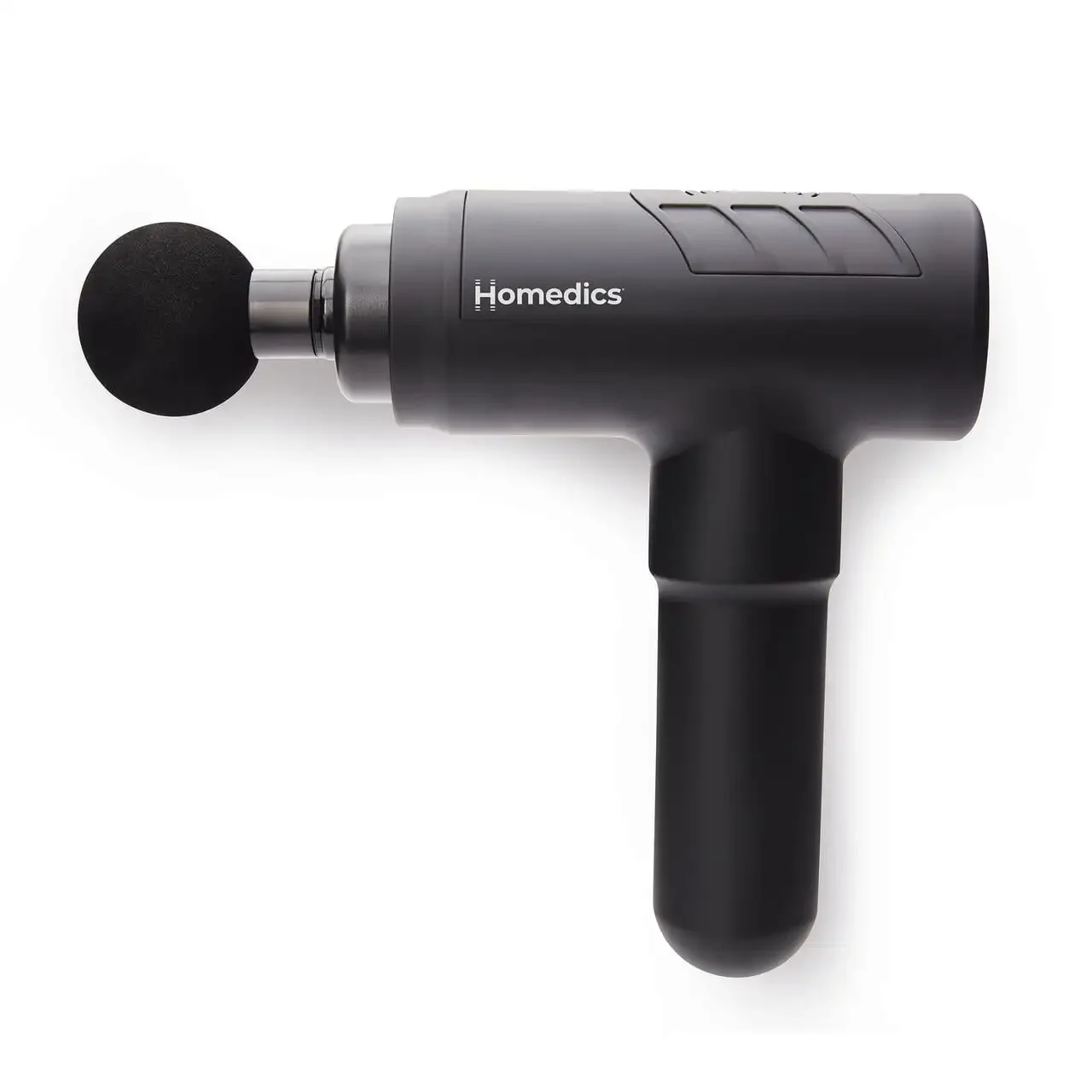 The rechargeable massage gun offers Powerful Percussion Massage. Fast and effective self-myofascial release; customize your massage with 5 speeds to meet your needs. The single ball attachment is versatile for full-body use; targeted, deep-tissue percussion massage helps ease muscle tension and stiffness on your back, shoulders, neck, and legs. With 1-touch button LED controls and 1 all-over attachment, this portable massage gun makes it easy to target your tension from anywhere. Cordless design with up to 2.5 hours of battery life and 3.5-hour charge time; use at home or on the go thanks to a battery charge light indicator and USB charging cord. Our mission to improve the lives of our customers continues as we evolve to meet the needs of our ever-changing world. Wellness is all about simple daily habits that help you take care of yourself and your family. - Professional quality percussion massage