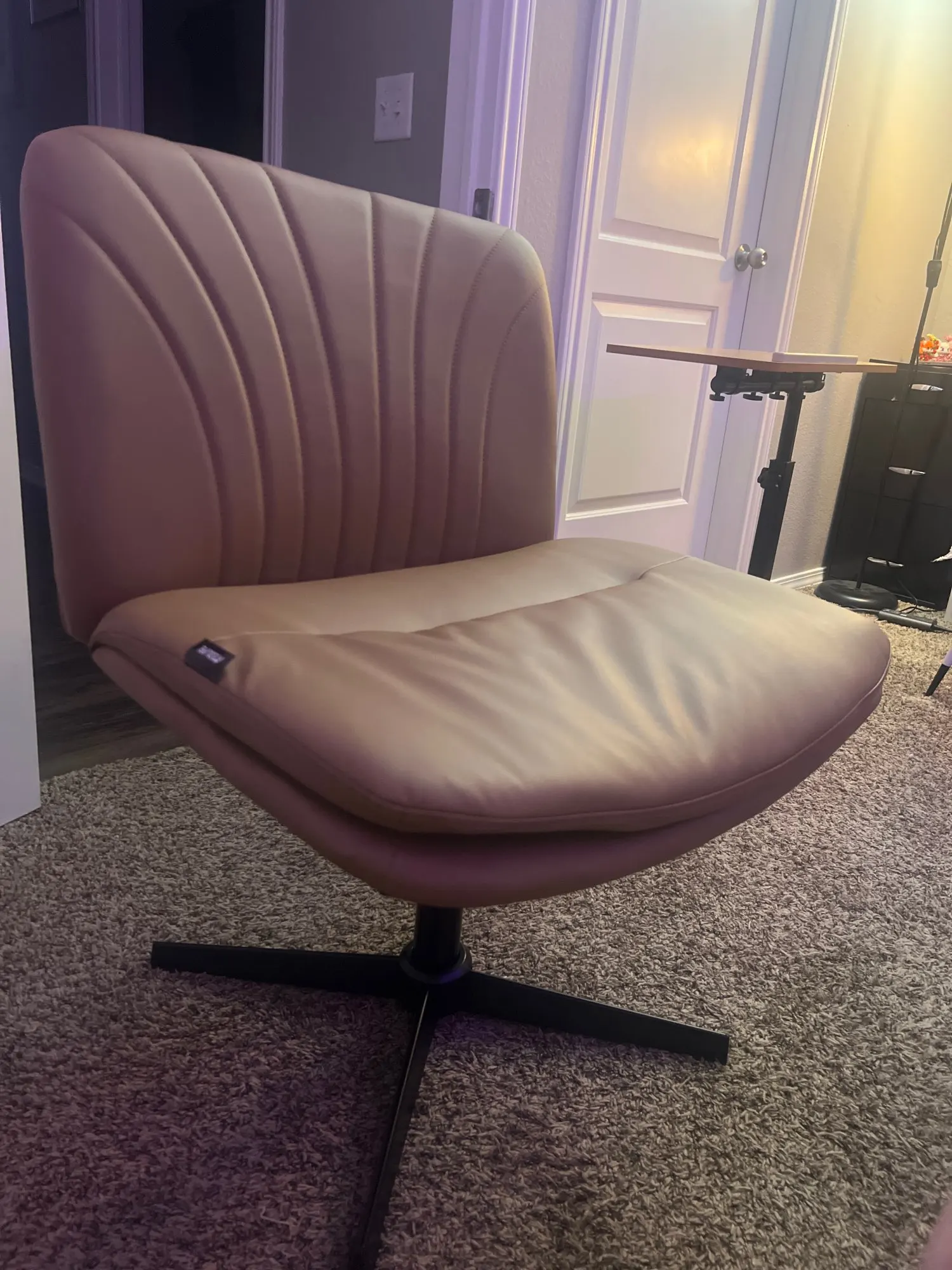 The office chair features a sleek and modern design, available in three colors: black, white, and brown. It is suitable for use in offices, home offices, studies, and gaming spaces. Additionally, its armless design allows for convenient storage.