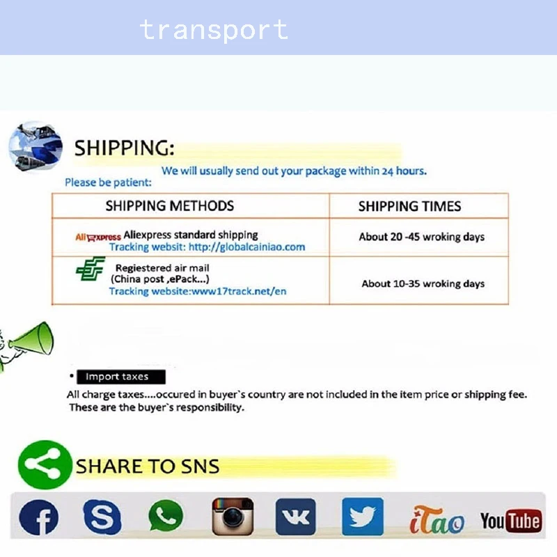 4. In most cases, international shipping takes about 15-60 days. We try our best to provide you with the most reliable and affordable delivery service. But sometimes international delivery is highly dependent on local customs and postal services. If you are in a hurry, please leave us a message before placing an order. The delivery time of holidays (Christmas, Chinese New Year, etc.) may be longer than usual, please add 5 to 10 days as a delay for both.
