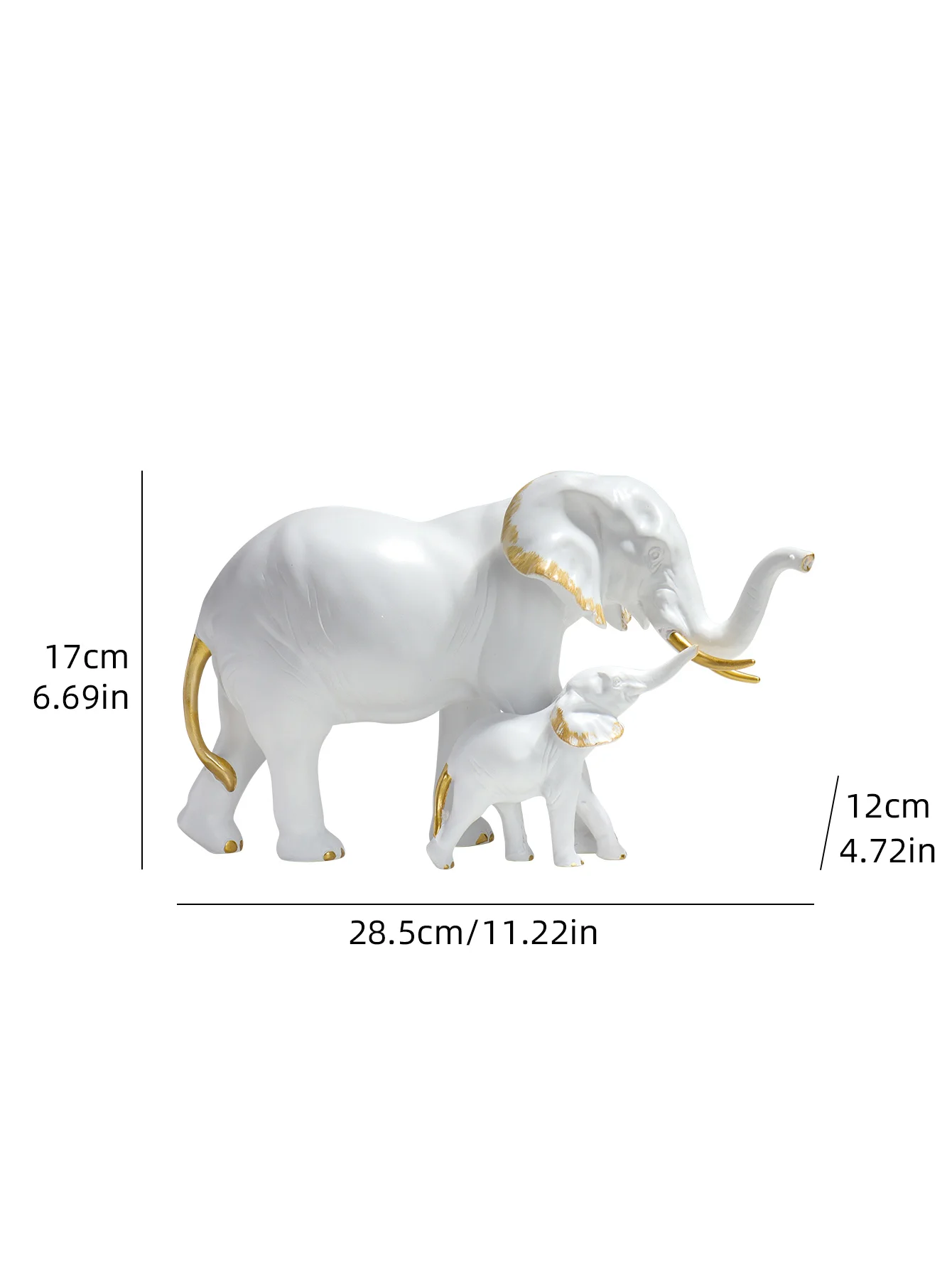 - Mother Elephant: 17 cm (6.69 in) H × 28.5 cm (11.22 in) L