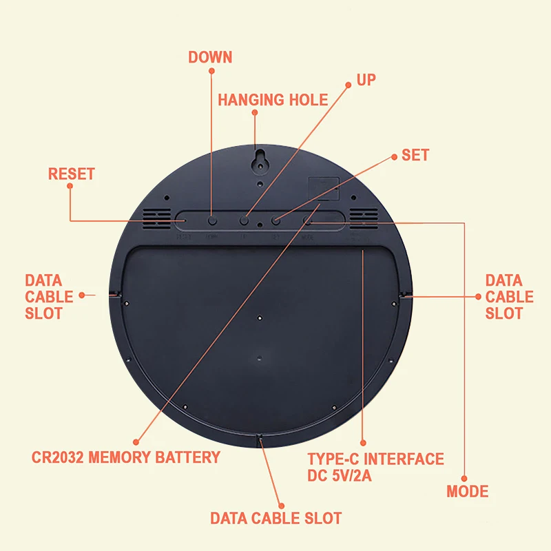 * Wifi colorful wall clock, built-in wifi and mobile APP pairing, automatically identify weather temperature and time, day of the week, date, one-click operation.