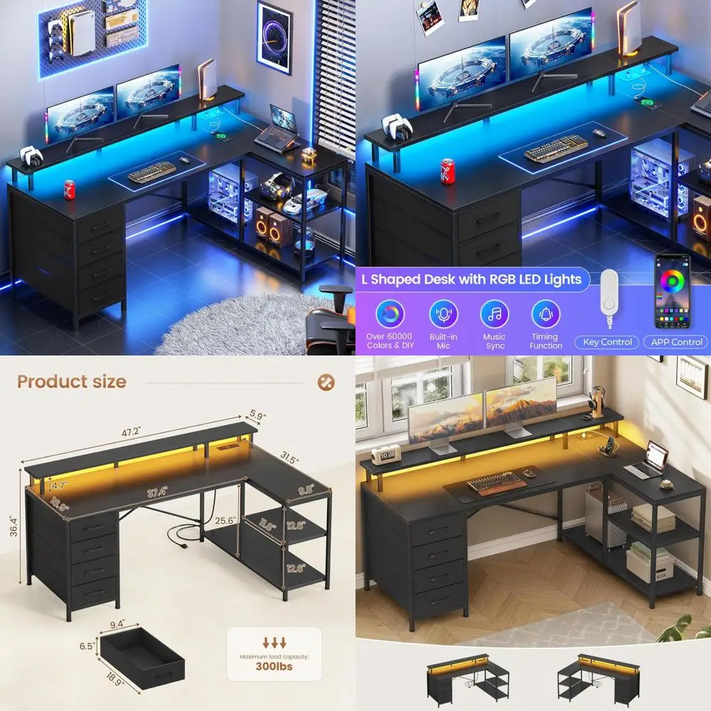 - 【COOL & SMART LED LIGHT STRIPS 】The Sedeta l shaped gaming desk comes with RGB LED light strip, remote control via APP, Over 60000 colors and 29 flashing modes for your to choose. Led light strip with music sync function, built-in sensitivity adjustable mic, led light color will change with the rhythm of the sound and music. And with timer function, just enjoy it in a smart way, create gaming and working atmosphere. Light Up Your Gaming with LED Light Strip.