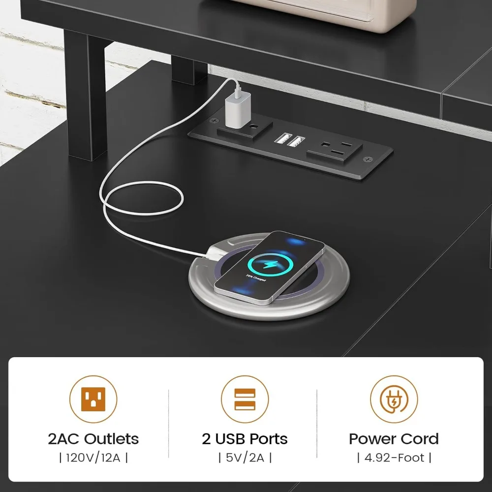 - 【DESK WITH STORAGE】Coming with 4 fabric storage drawer, printer shelves, 2 tier storage shelves and a computer tower stand, with powerful storage space. Drawers are made of breathable high-quality fabric, lightweight and easy to install. This solid constructed L shaped computer desk could hold printers, scanners, fax machines and any other office machines.