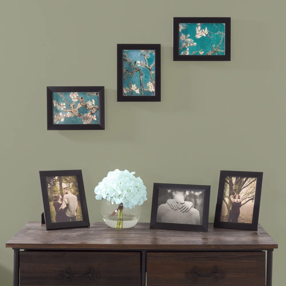 Our selection is available in various sizes to fit your home décor and framing needs: 4x6, 5x7, 8x10, 11x14, and document frames 8. 5x11. All size options include 6 frames to create a collage, hang or set in your living room, bedroom, dining room, and around your home.