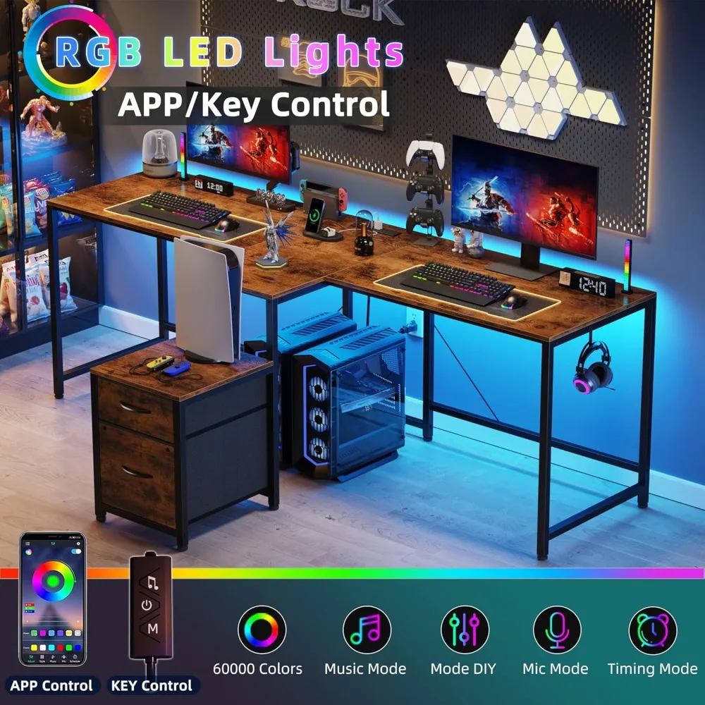 - 【4 AC, 2 USB Outlets & LED Lights】Designed for convenience, this 2 person office desk comes with a built-in RGB LED strip controlled via a mobile app. Equipped with 4 AC outlets and 2 USB ports, it easily supports charging your computer, printer, tablet, and other devices simultaneously, creating a perfect work or gaming atmosphere