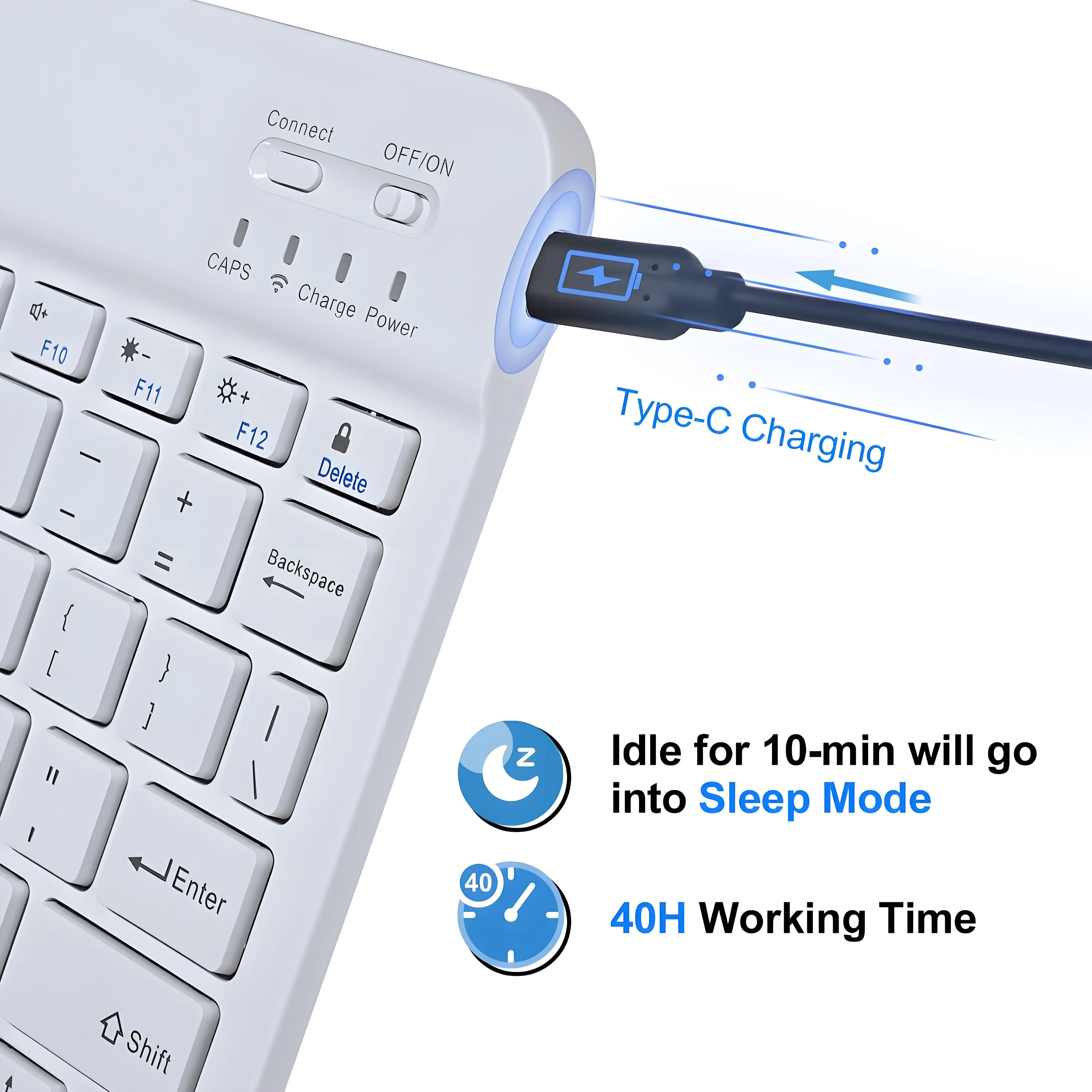 Experience seamless connectivity with our Slim Bluetooth 5.0 Keyboard, ensuring a stable wireless range of up to 30 feet.