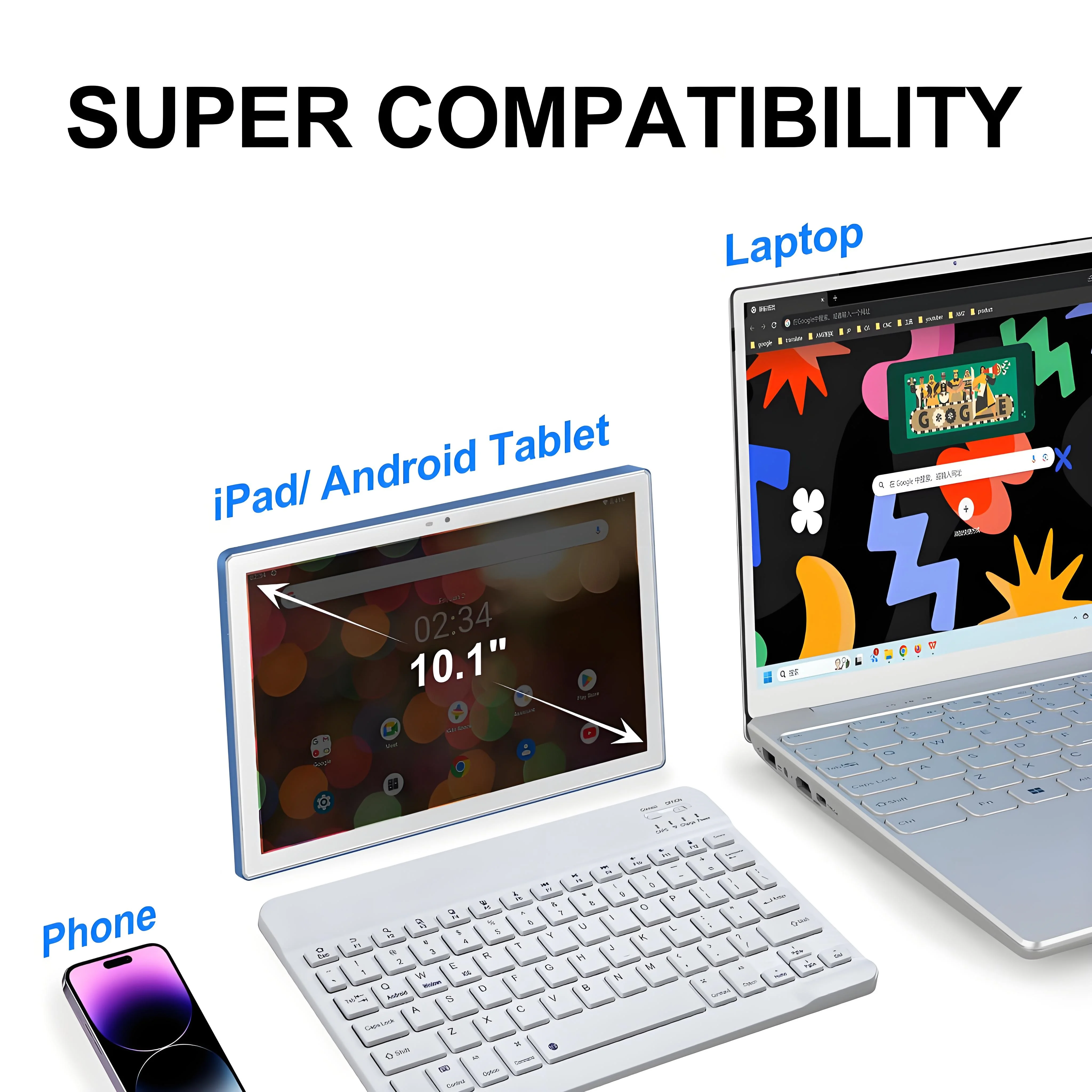 This universal wireless keyboard is designed to work with iOS, Android, and Windows devices, offering versatility and convenience.