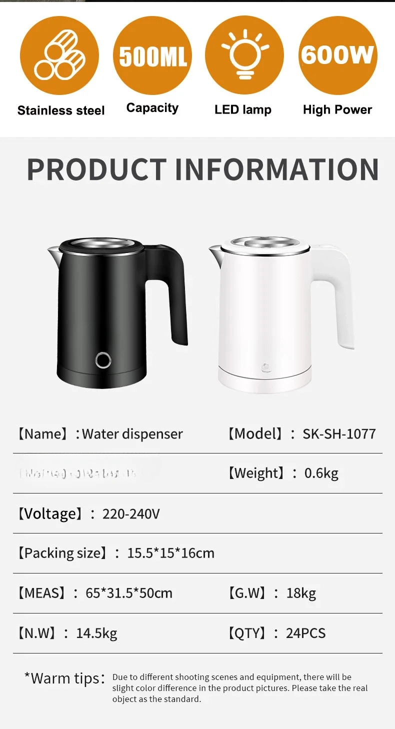 Travel Companion - 0.5L capacity, the small electric kettle will fit nicely into your suitcase, luggage and backpack which is excellent for business trip, travel and hotel. The mini design of this portable travel kettle will be easier to carry than other models as well as it won't take up much counter space.