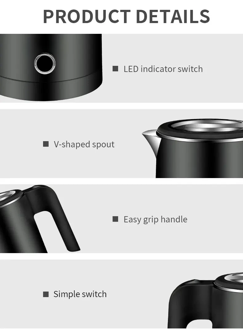 Cool Touch Design - Possessed with a double-layer made of an anti-scalding outer layer and stainless steel inner, the electric kettle can not only prevents you from burning but also provides more safety in your daily life. Together with an ergonomic handle, this electric kettle gives you a cool and safe touch.